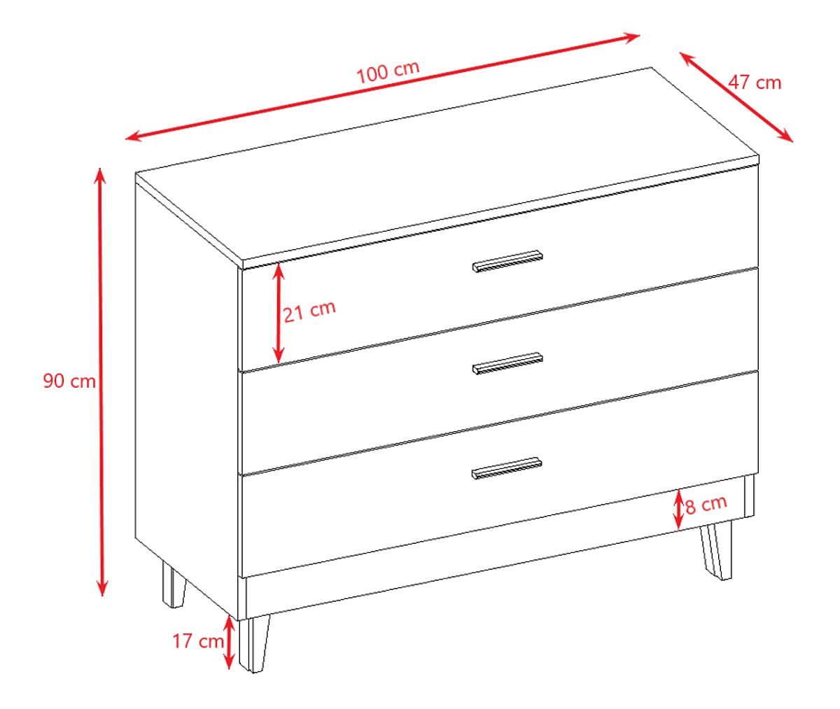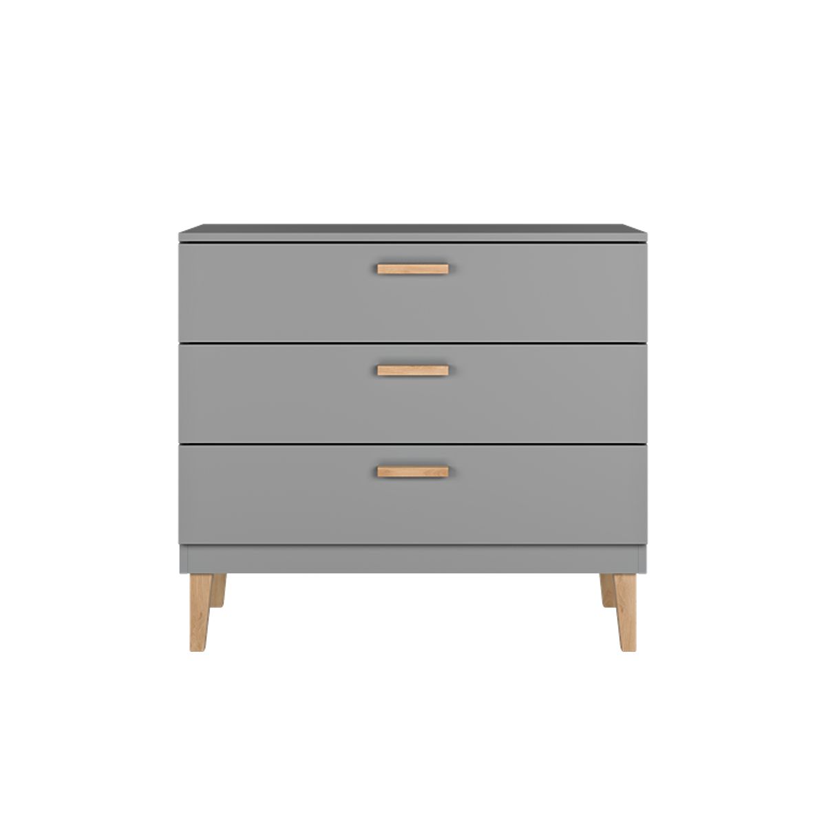 Nowoczesna szara komoda KUBI z 3 przestronnymi szufladami. Komoda jest odpowiednia do pokoi dziecięcych zarówno dla dzieci, jak i studentów. Ponadczasowy skandynawski styl doskonale pasuje do komody i świetnie komponuje się z innymi meblami z tej samej kolekcji.