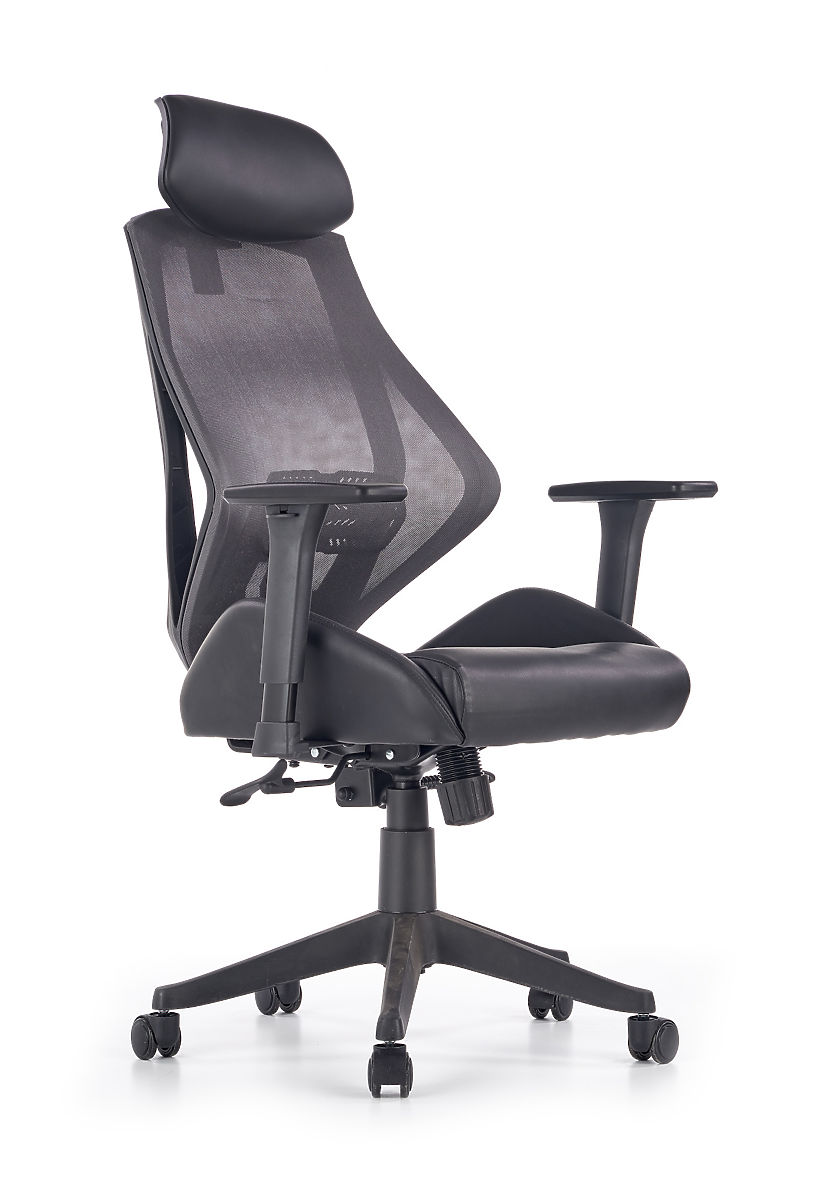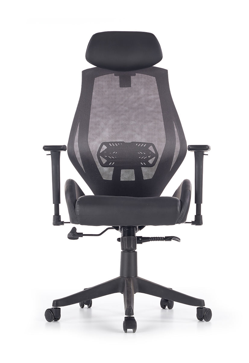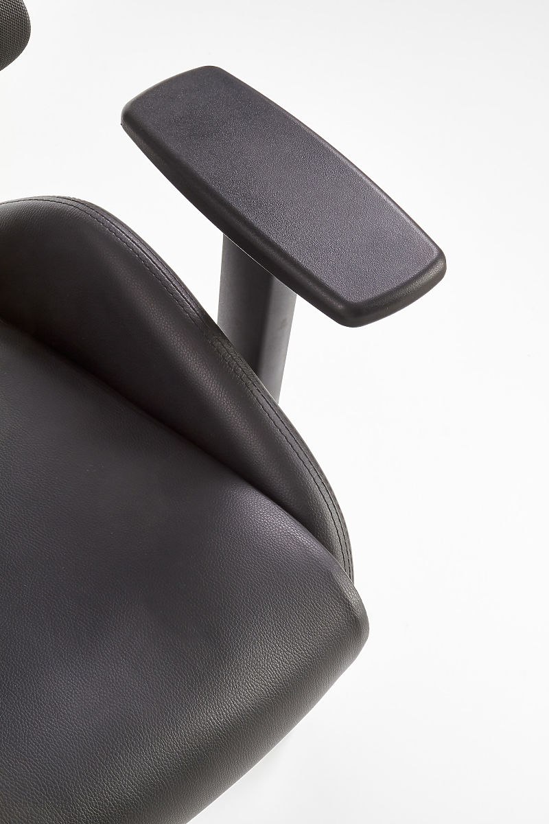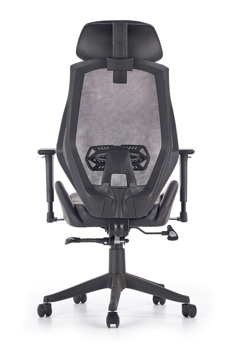Mechanizm Multiblock oferuje możliwość bujania, którego sztywność można samodzielnie regulować. Ergonomicznie ukształtowane oparcie i zagłówek pokryte są przewiewną siatką, a siedzisko krzesła jest tapicerowane ekoskórą w kolorze czarnym. Oparcie dodatkowo wyposażone jest w podparcie lędźwiowe, które zapewnia zdrowe siedzenie razem z regulowanymi podłokietnikami. Konstrukcja wykonana jest z wytrzymałego plastiku.