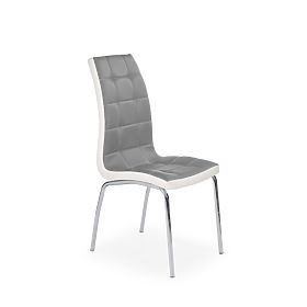 Tapicerka wykonana jest z wysokiej jakości ekoskóry w kolorze szarym i białym, ozdobnie przeszywanej na kwadraty białą nicią. Konstrukcja wykonana jest z chromowanej stali.