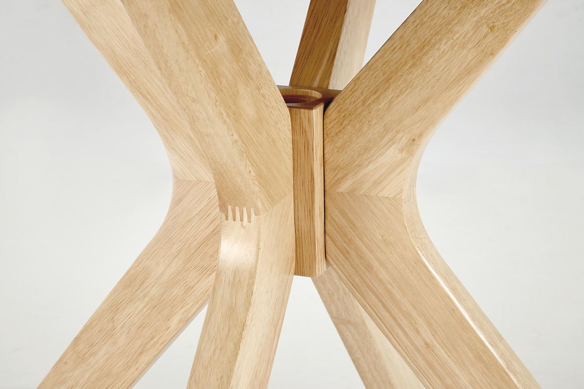 Blat stołu wykonany jest z płyty MDF z naturalną okleiną. Nogi stołu są z litego drewna.