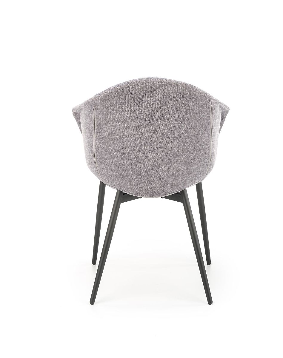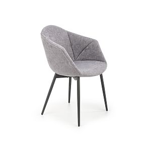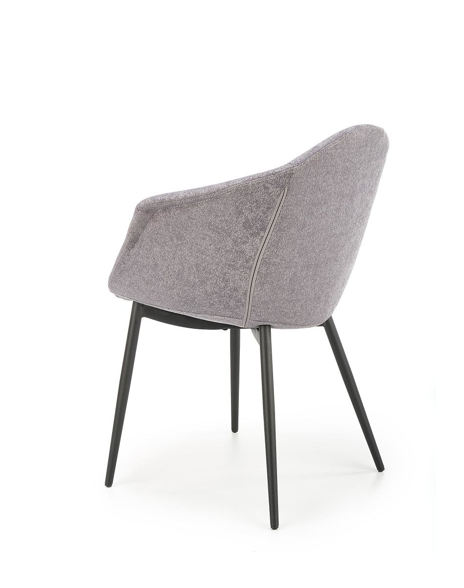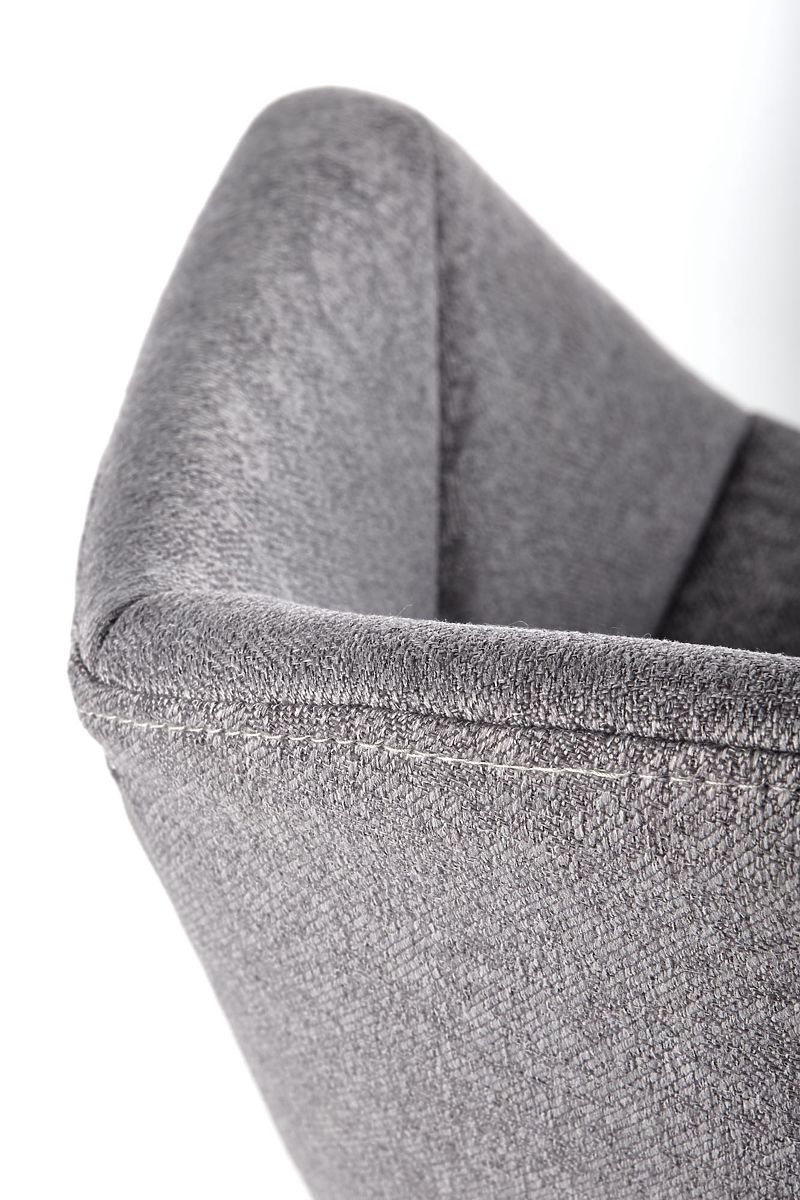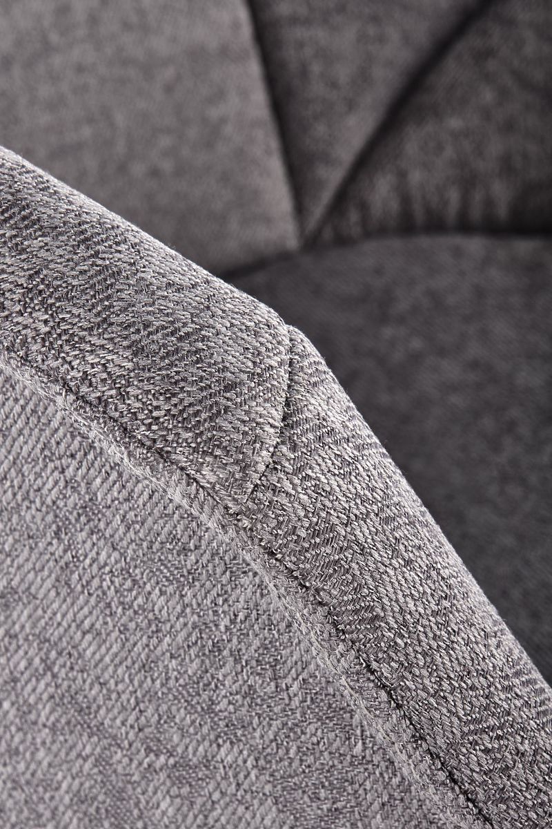 Siedzisko i oparcie pokryte są przyjemnym materiałem w szarym kolorze. Konstrukcja wykonana jest z czarnej stali malowanej proszkowo.