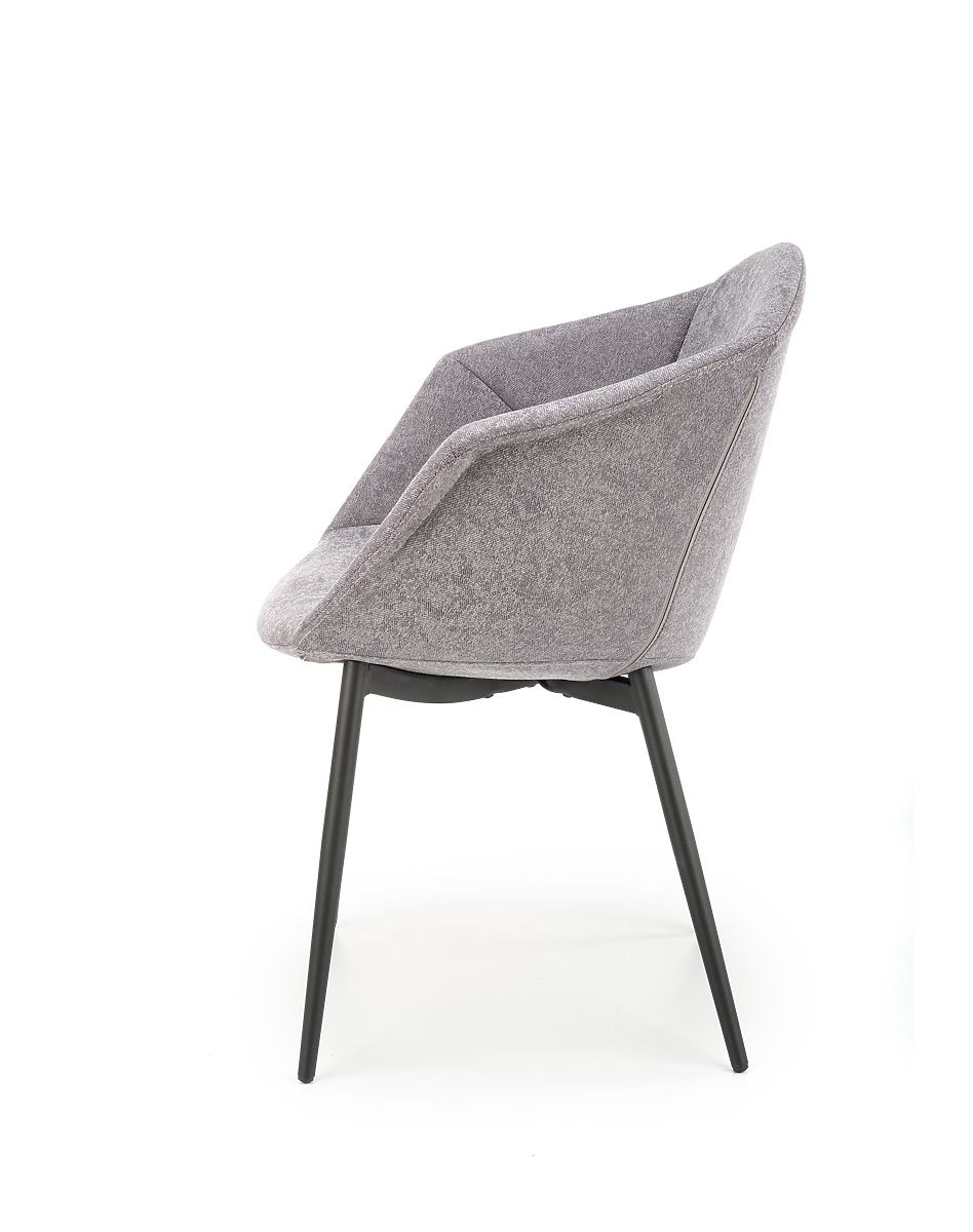 Krzesło do jadalni z szarym materiałem i czarną stalową konstrukcją. .. więcej