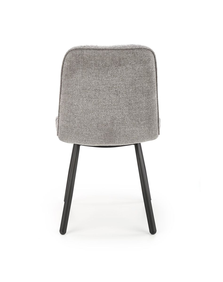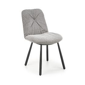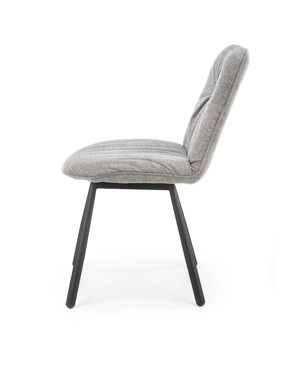 Siedzisko i oparcie są tapicerowane przyjemną szarą tkaniną. Konstrukcja wykonana jest z czarnej stali malowanej proszkowo.