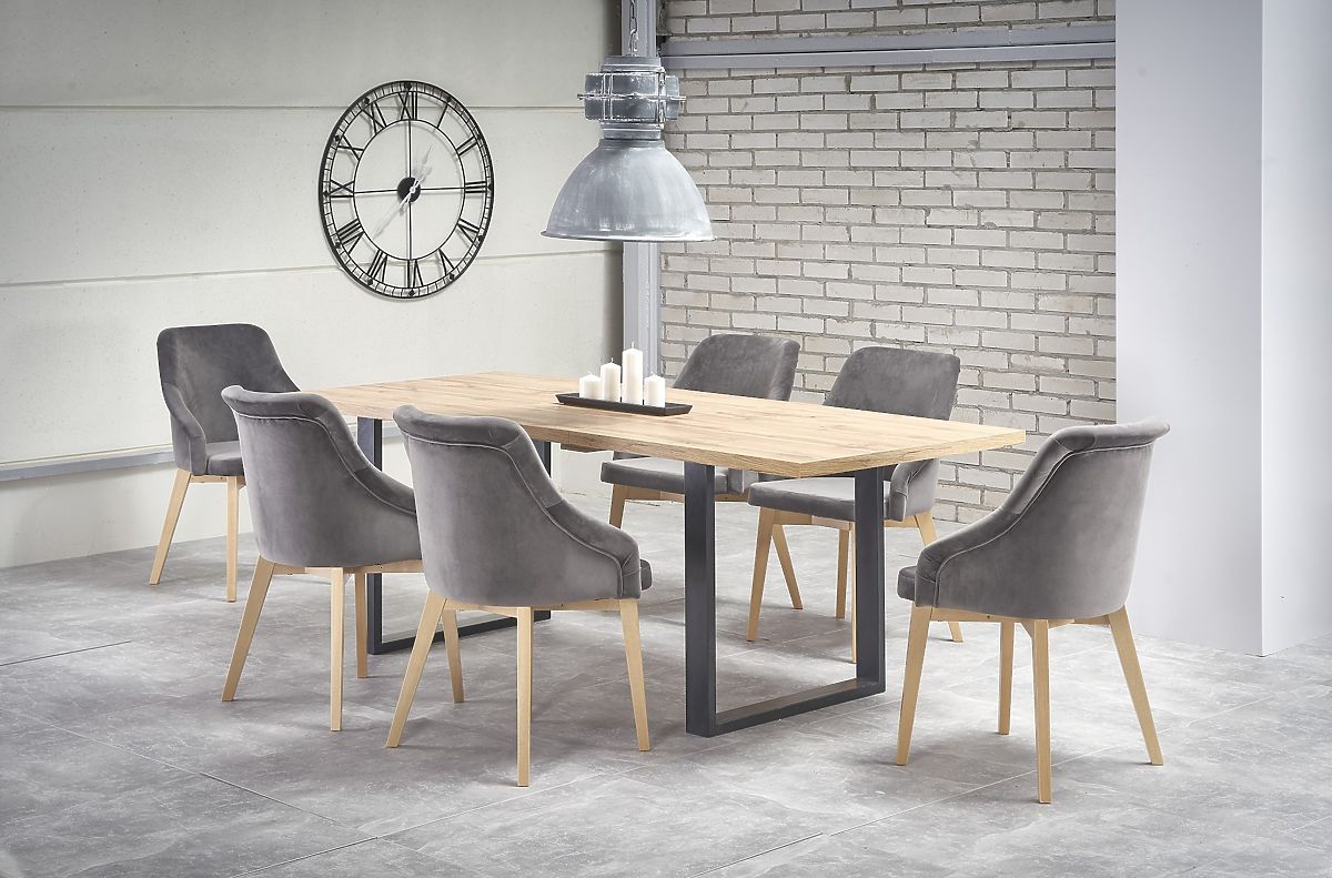 Nowoczesny rozkładany stół jadalniany VENOM o minimalistycznym designie pasuje do większości jadalni lub kuchni.