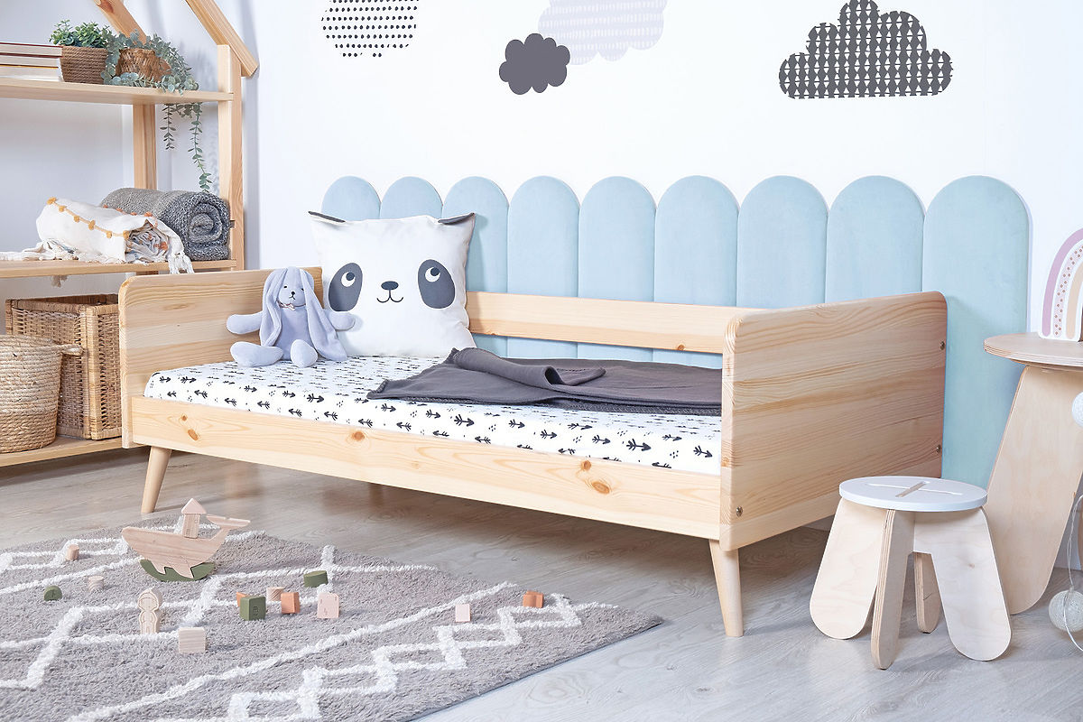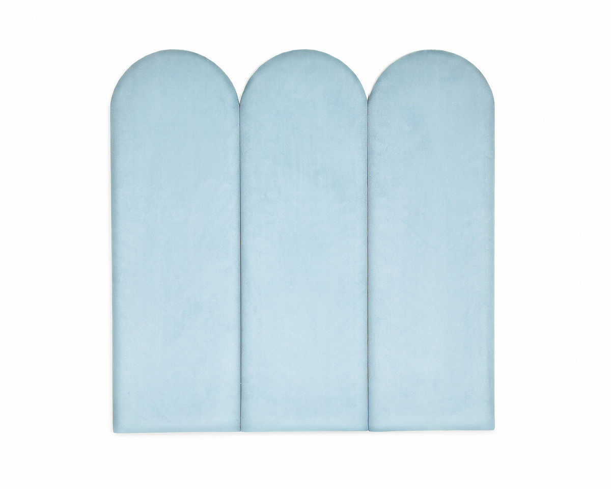 Tapicerowane panele w kolorze baby blue są dostępne w trzech różnych rozmiarach: