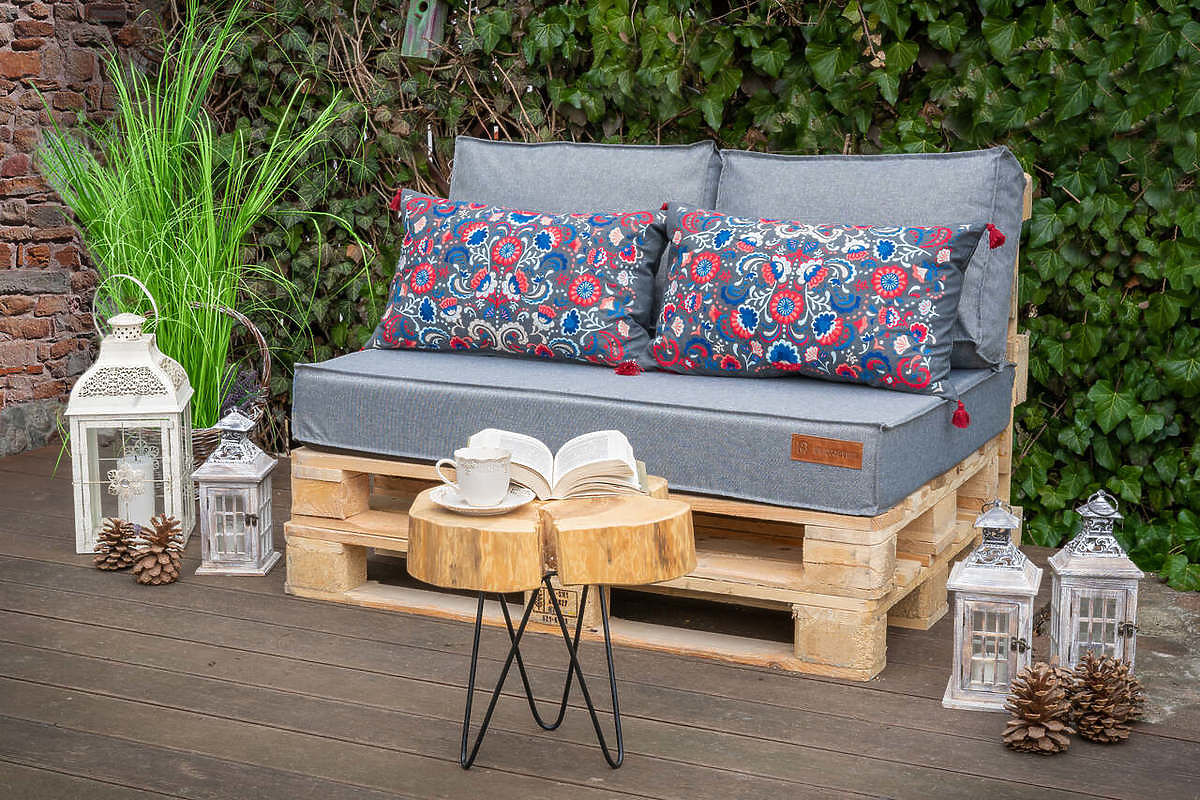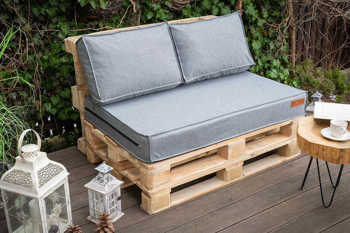 Jasnoszary komplet poduszek na meble z palet to doskonały wybór, aby w łatwy sposób urozmaicić miejsce do siedzenia na tarasie, balkonie czy w ogrodzie. Idealnie przygotowany do wymiarów europalet. Specjalna technologia szycia zapewnia odporność materiału na promieniowanie UV i wodę, dzięki czemu materiał pozostaje wytrzymały i nie blaknie.