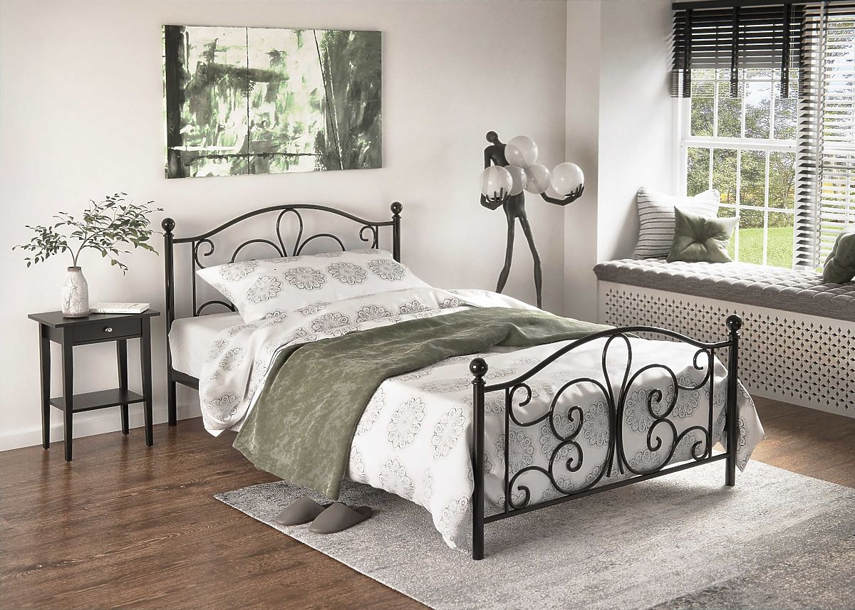 Czarne metalowe łóżko Panama w rozmiarze 120x200 cm, eleganckie, nowoczesne i stylowe, ma ciekawy design i dzięki swoim wymiarom nadaje się nie tylko do pokoju studenckiego , ale również do sypialni .