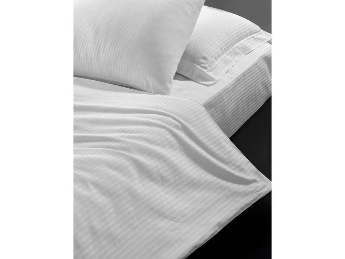 Pościel Atlas Gradl biała to wysokiej jakości pościel typu hotelowego. Prześcieradło posiada poziome paski o szerokości 4 mm, które powstały w wyniku specjalnego tkania. Ta cecha konstrukcyjna nadaje pościeli miękki i elegancki wygląd.