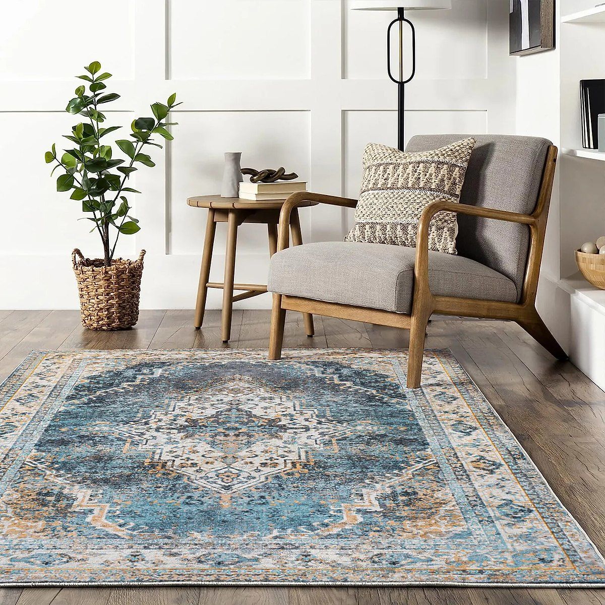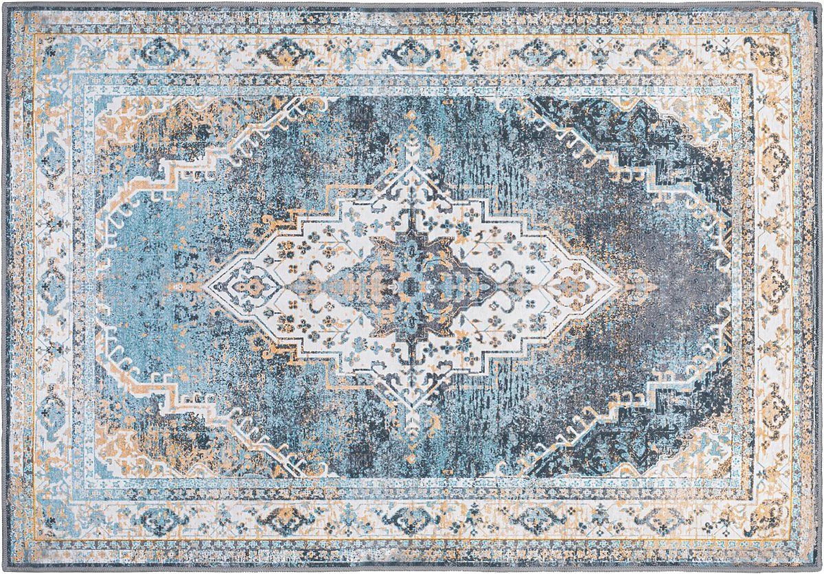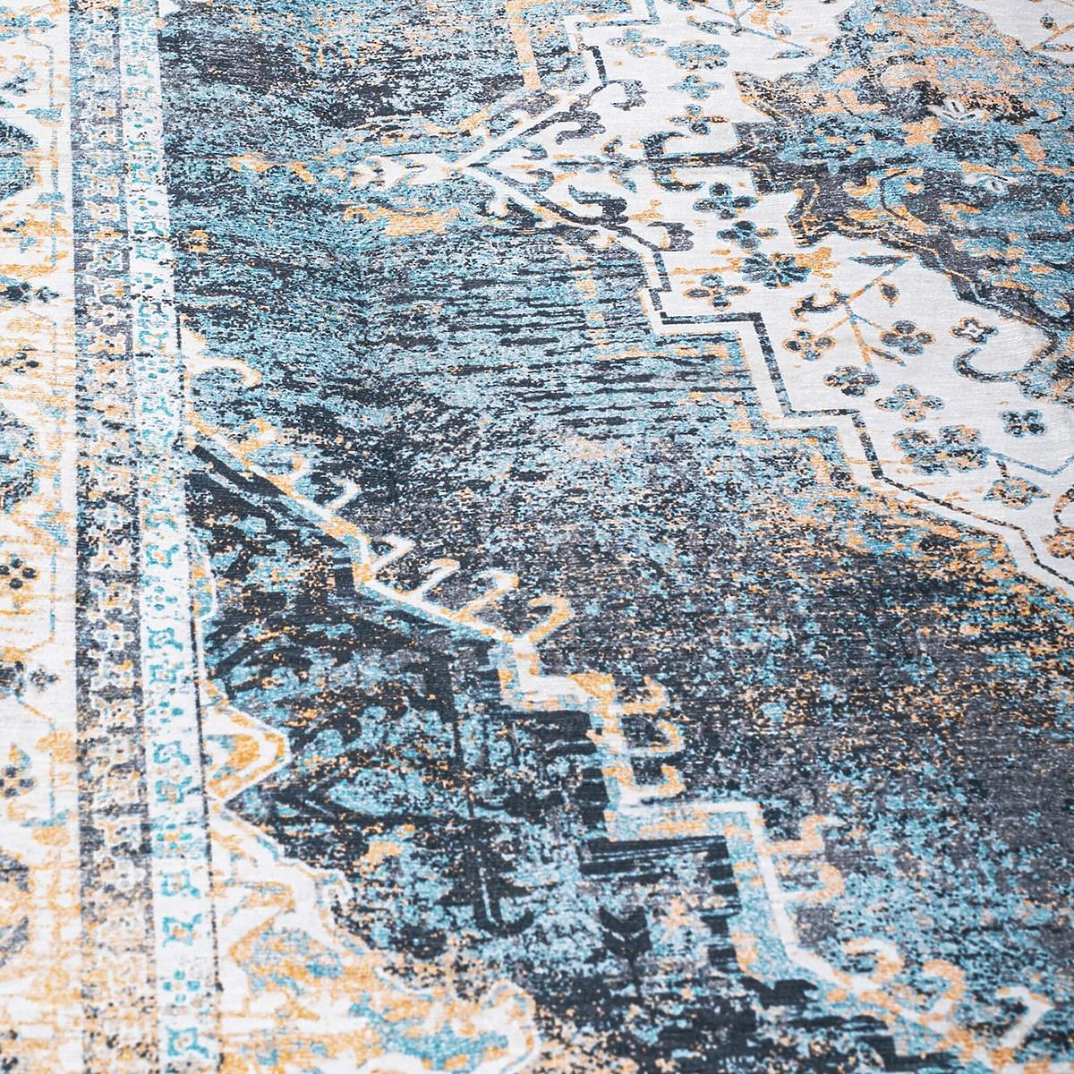 Jeśli szukasz ciekawego elementu do swojego wnętrza, ten perski dywan jest właśnie dla Ciebie. Salon lub sypialnia wzbogacona o ten dywan będzie miała niepowtarzalny wygląd. Dywan wykonany jest z wysokiej jakości materiałów i jest dopasowany do odcieni błękitu. Starannie uszyte krawędzie nadają mu elegancji i trwałości. Wykładzina jest antypoślizgowa pod spodem, co zapobiega niekontrolowanemu przesuwaniu się po podłodze.