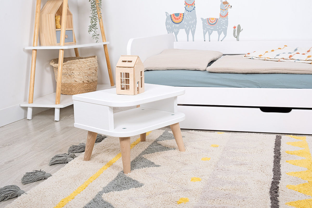Elegancki stolik nocny z kolekcji NELL marki Ourbaby , wykonany z wysokiej jakości drewna sosnowego, zapewni miejsce na Twoje rzeczy, a także będzie stylowym .. więcej