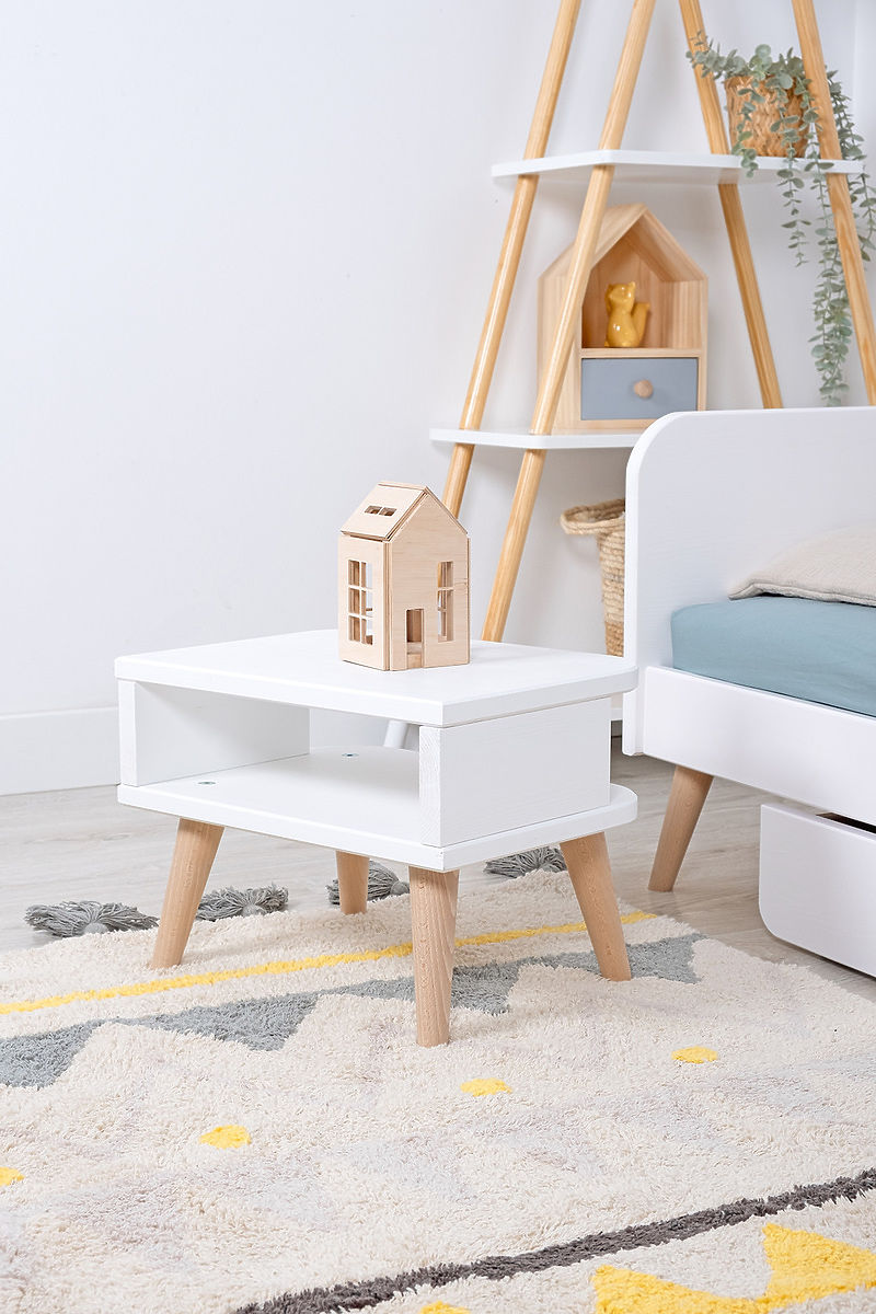 Elegancki stolik nocny z kolekcji NELL marki Ourbaby , wykonany z wysokiej jakości drewna sosnowego, zapewni miejsce na Twoje rzeczy, a także będzie stylowym dodatkiem do każdego wnętrza. Połączenie bieli i naturalnych kolorów wnosi do pomieszczenia subtelną elegancję. Produkt pokryty 3 warstwami białej farby, co gwarantuje odporność na ścieranie.