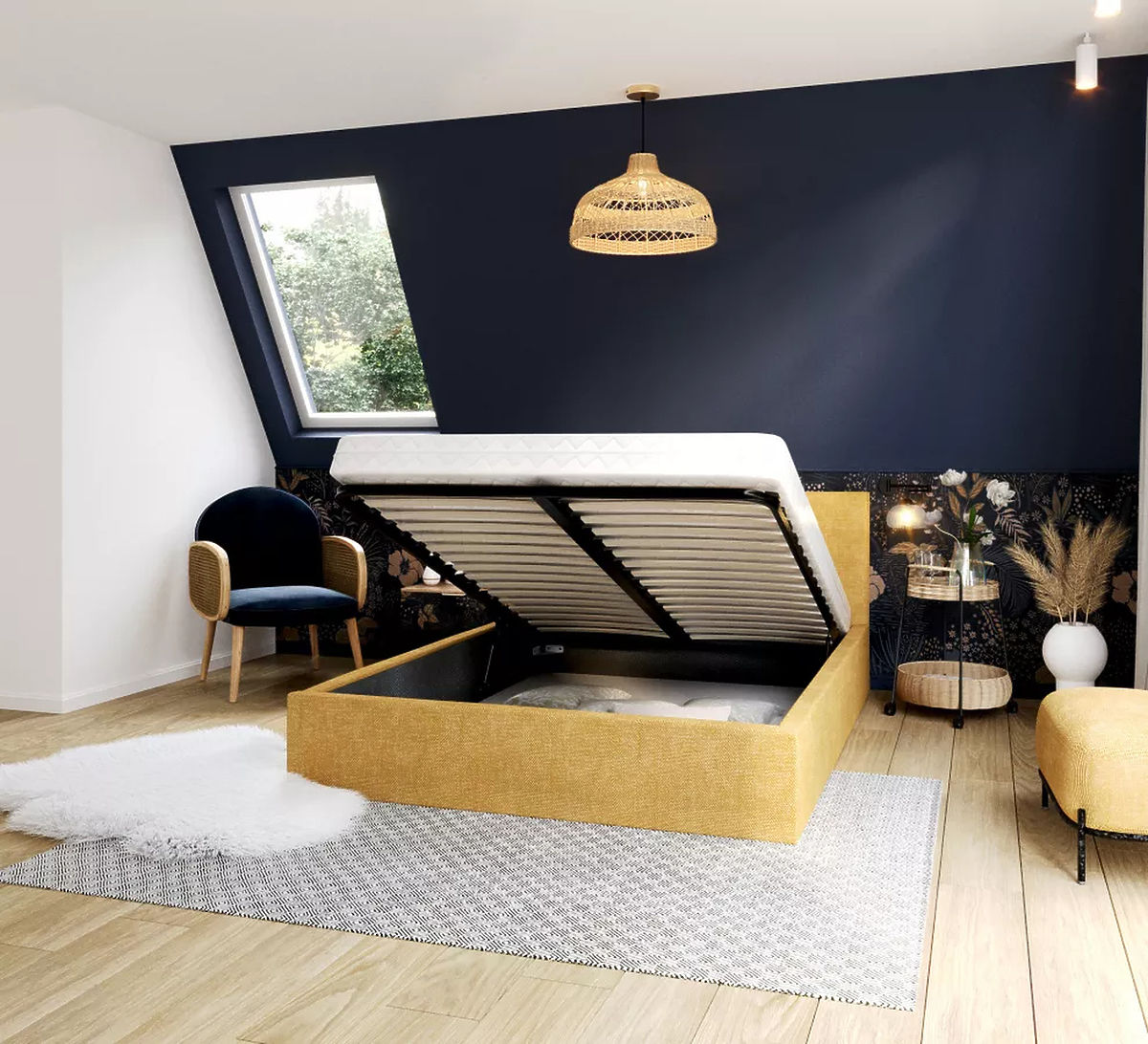 Łóżko tapicerowane TULSA o wymiarach 160 x 200 cm w kolorze żółtym to naprawdę doskonały wybór do Twojego pokoju. Łóżko to wnosi do pokoju uderzające połączenie elegancji i komfortu, idealne dla par poszukujących przestronnego i stylowego miejsca do wypoczynku. Kolor żółty kojarzy się z radością, optymizmem i energią. Tworzy słoneczną i świeżą atmosferę, która ożywi Twój pokój, dodając jednocześnie ciepłego i pozytywnego akcentu.