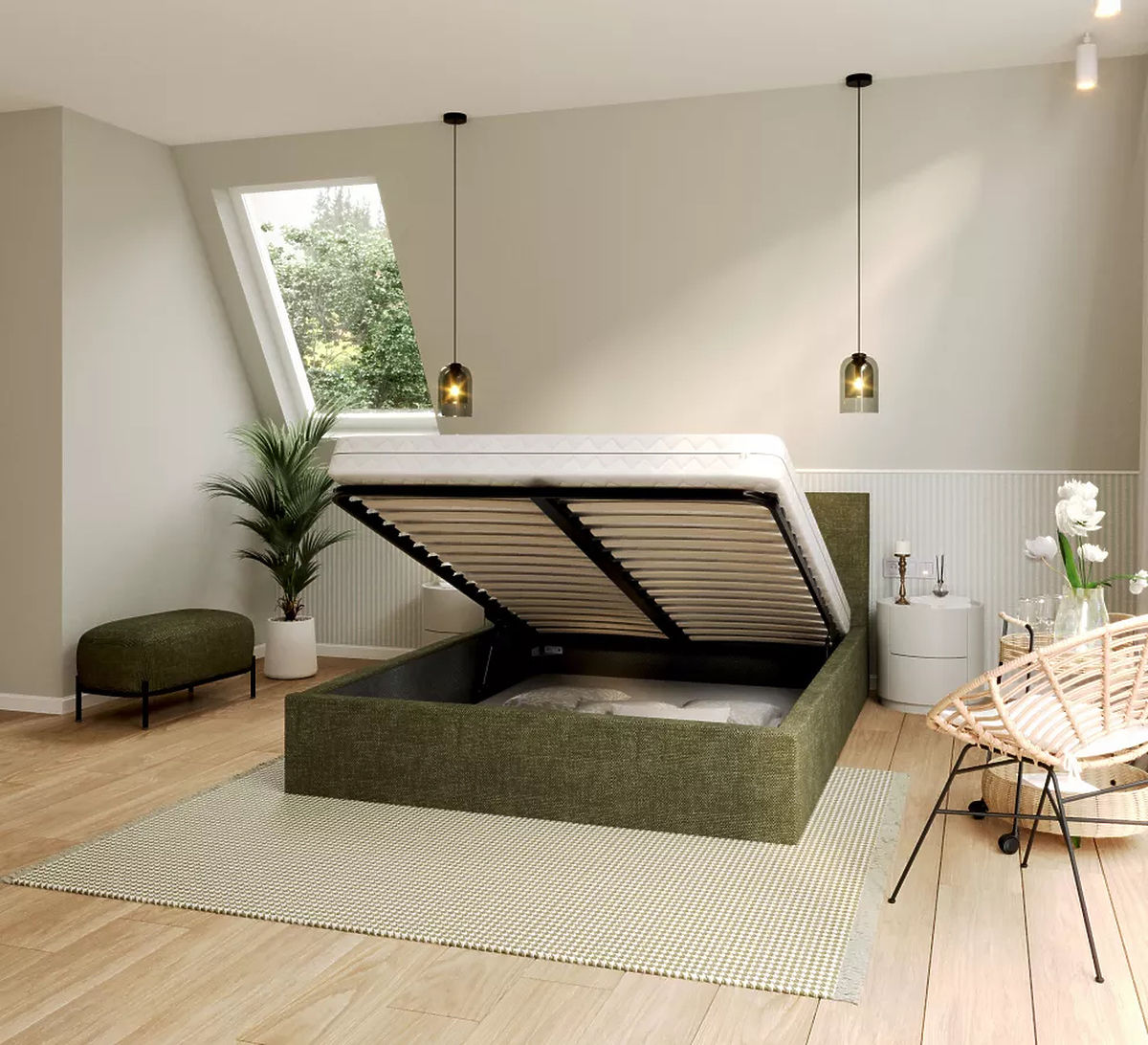 Zastosowanie w konstrukcji łóżka wysokiej jakości płyty meblowej zwiększa jego wytrzymałość i trwałość. Oznacza to, że łóżko jest w stanie wytrzymać naprężenia i naciski, co jest kluczem do bezpieczeństwa i komfortu podczas snu. Połączenie siatki podnoszącej i tłoków podnoszących w celu stworzenia użytecznej przestrzeni do przechowywania pod łóżkiem to świetne rozwiązanie w sypialniach z ograniczoną przestrzenią do przechowywania.