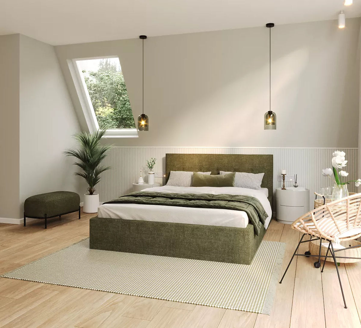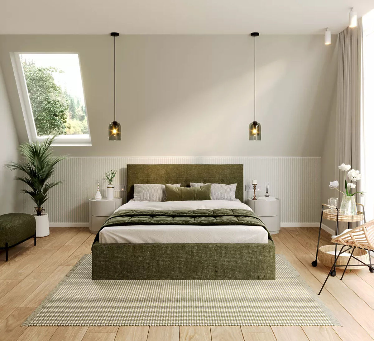 Łóżko TULSA w kolorze oliwkowym i wymiarach 180 x 200 cm z pewnością stanowi doskonałe połączenie elegancji i komfortu w Twojej sypialni. Rozmiar łóżka zapewnia wystarczającą ilość miejsca do swobodnego poruszania się w nocy, co ma kluczowe znaczenie dla jakości snu, szczególnie w przypadku par. Wystarczająca przestrzeń pozwala obojgu partnerom spać wygodnie i bez żadnych ograniczeń. Oliwkowy kolor wnosi do pomieszczenia spokój i harmonię, co jest doskonałym sposobem na stworzenie relaksującej atmosfery w sypialni.