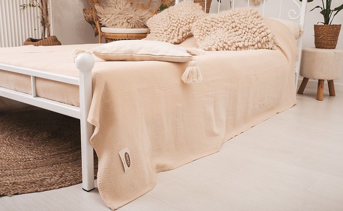 Narzuta muślinowa 240x210 cm. Jest lekki, przyjemny i miękki w dotyku. Charakteryzuje się doskonałą oddychalnością i możliwością regulowania temperatury. Nie wymaga prasowania, zawsze daje efekt estetyczny i nadaje sypialni przytulny wygląd.