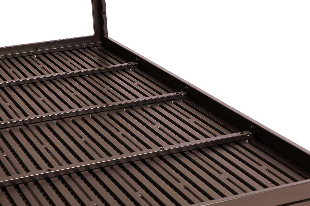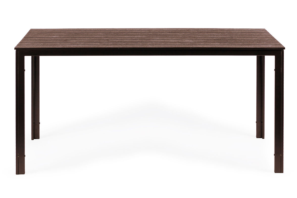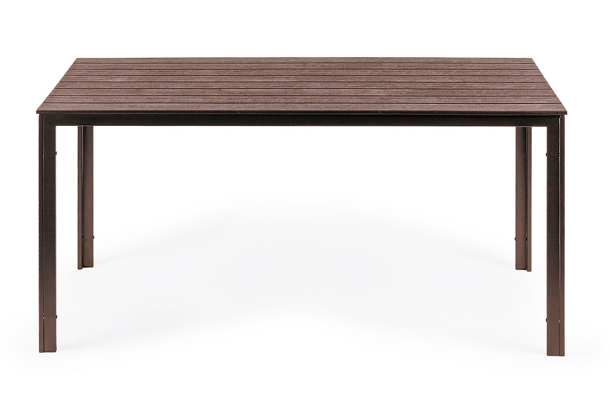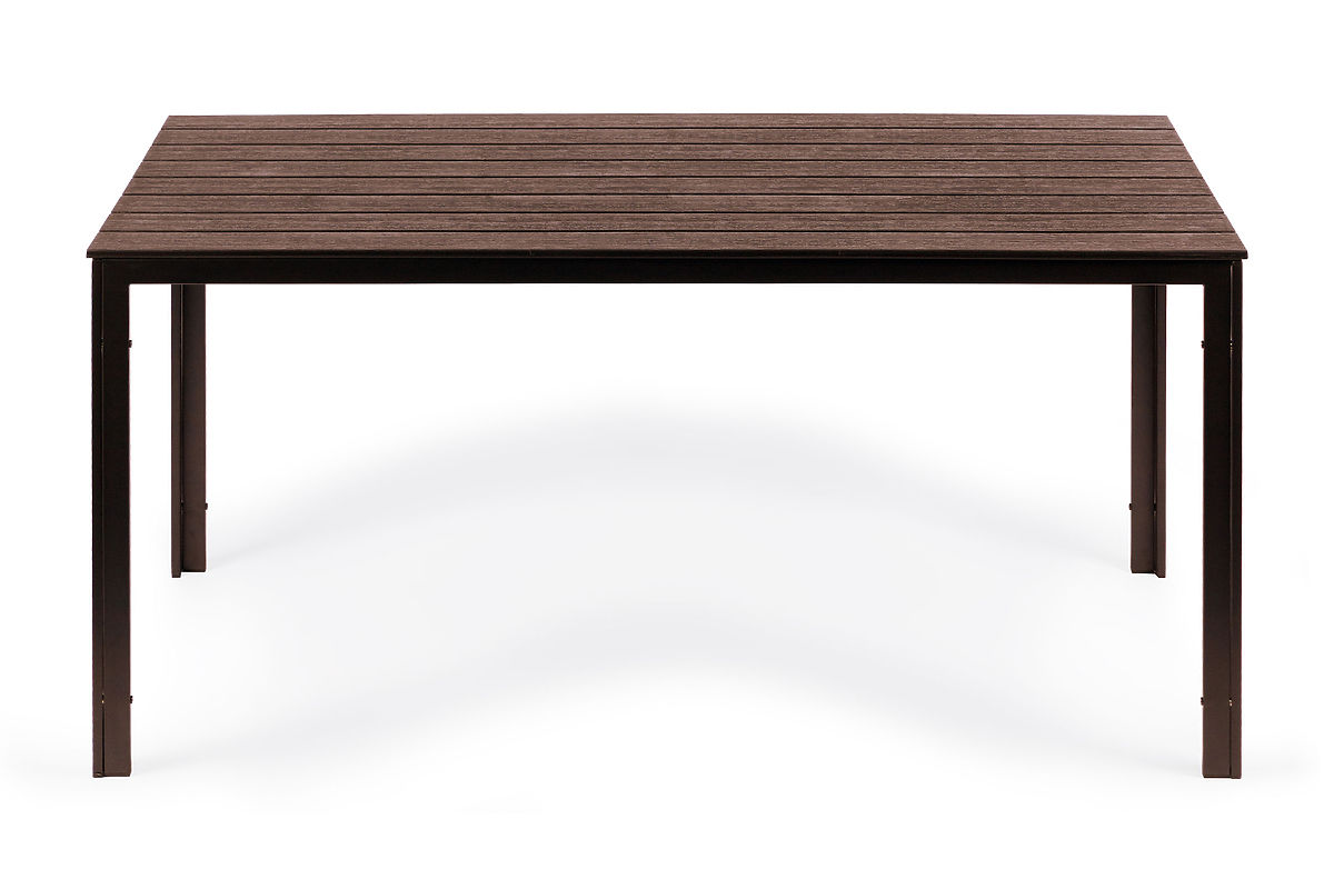 Stół ogrodowy BASIC wykonany jest z profili metalowych, dzięki czemu cała konstrukcja jest stabilna i nie odkształca się jak plastikowe stoły. Blat posiada pod spodem dodatkowe profile poprzeczne, które nadają mu sztywności i zapewniają odpowiednią wytrzymałość. Powierzchnię blatu pokryto wzorem imitującym fakturę drewna.