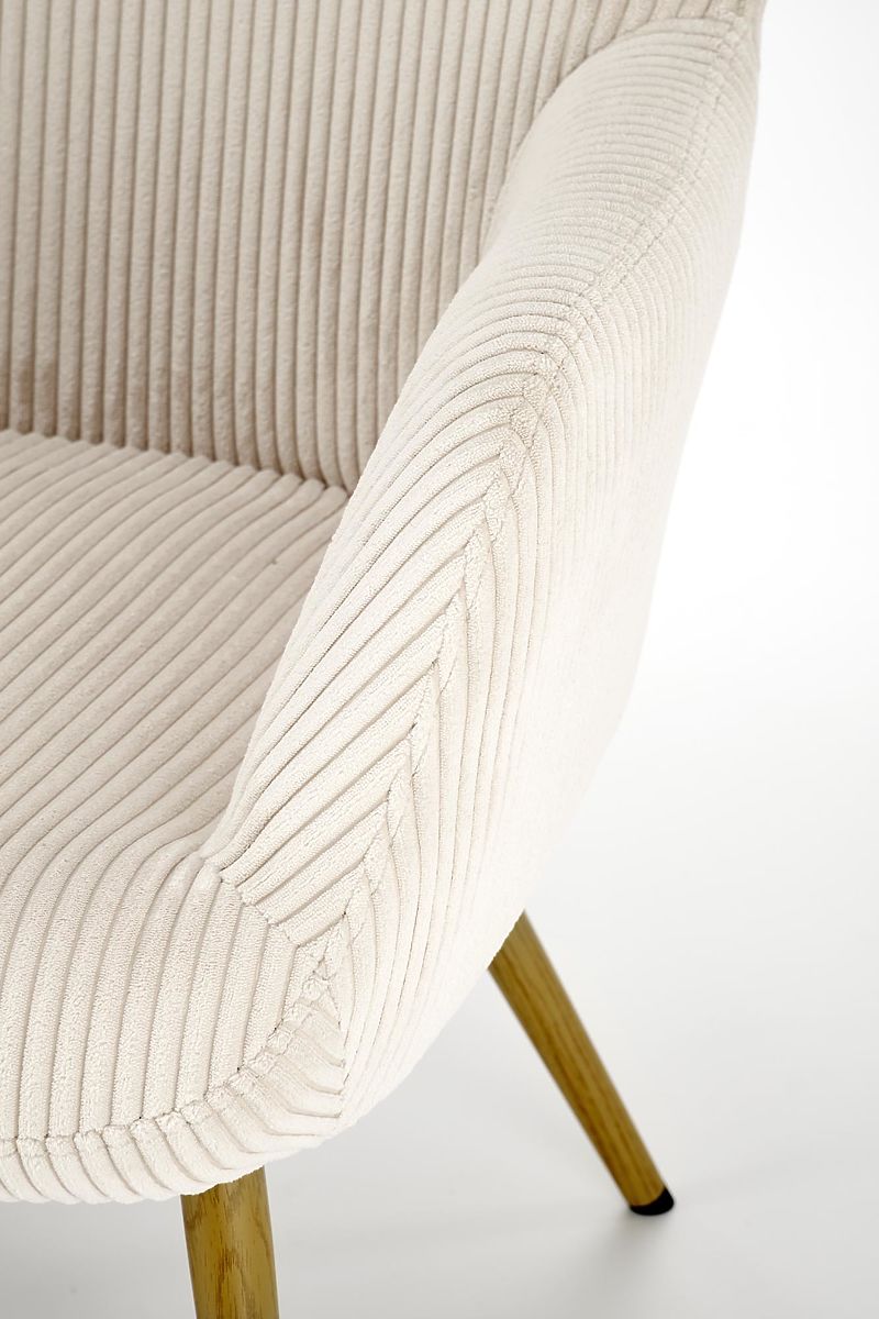 Sztruks w kremowym kolorze nadaje krzesłu miękki i jednocześnie wyrafinowany wygląd. Tkanina ta jest nie tylko przyjemna w dotyku, ale także trwała i łatwa w utrzymaniu, co gwarantuje długą żywotność Twojego krzesła.