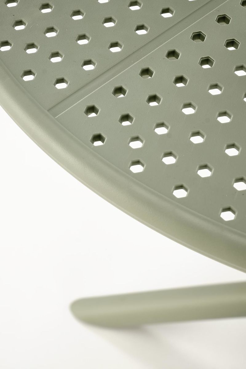 Stół ogrodowy Calvo stanie się praktycznym elementem Twojego miejsca do siedzenia na zewnątrz. Jej okrągły kształt i subtelny odcień miętowego koloru wniosą powiew świeżości i elegancji do Twojego ogrodu lub tarasu.