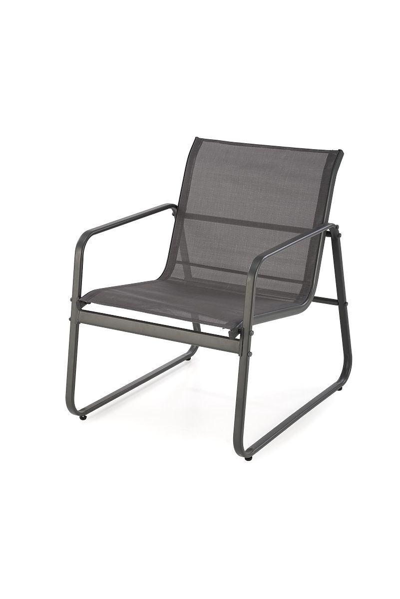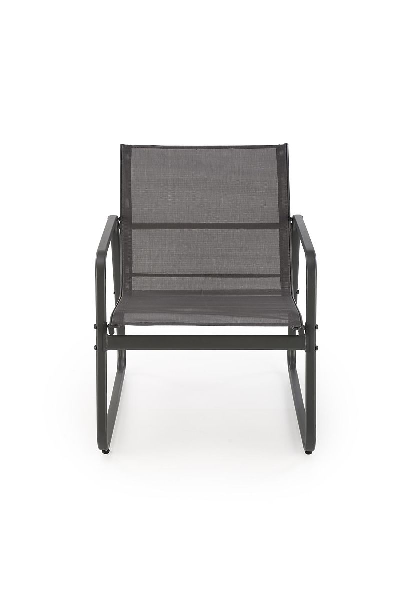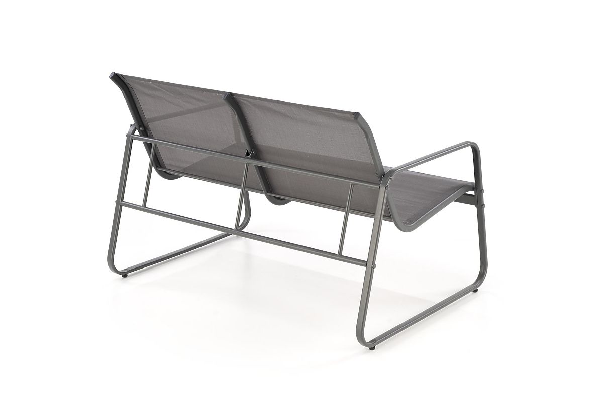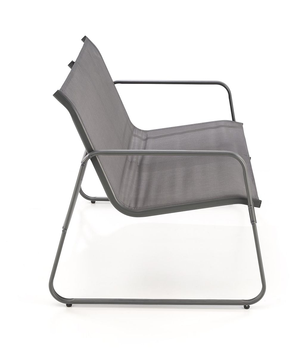 wymiary: sofa-114/74/76/38 cm, fotel-60/74/76/38 cm, ława-75/45/41 cm, zestaw ogrodowy ( sofa + fotel 2x + ława ), materiał: stal malowana proszkowo / szkło / siatka, kolor: ciemny popiel