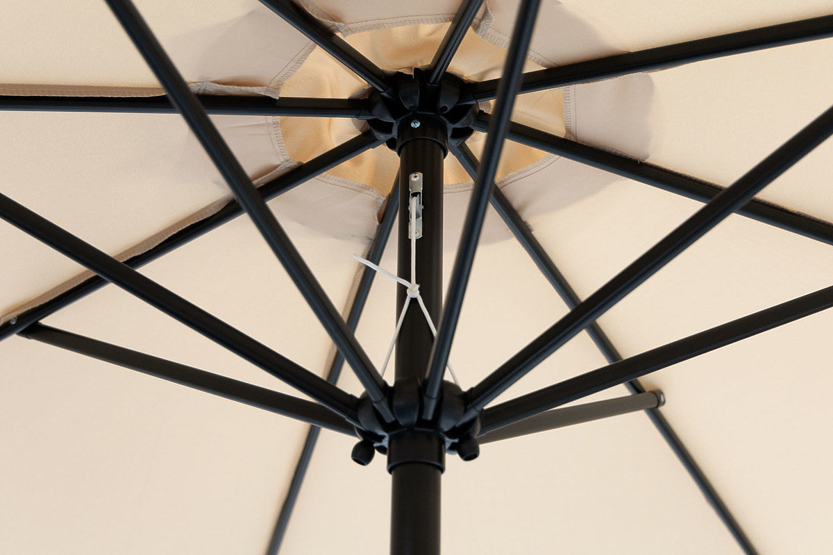 Kolejną zaletą parasola jest możliwość nachylenia osłony. To rozwiązanie zapewnia najlepszą ochronę przed promieniami słonecznymi, gdy słońce nie jest wysoko. Wszystko dzięki systemowi "TILT", dzięki któremu można ustawić osłonę parasola pod kątem i uzyskać większą zacienioną powierzchnię.