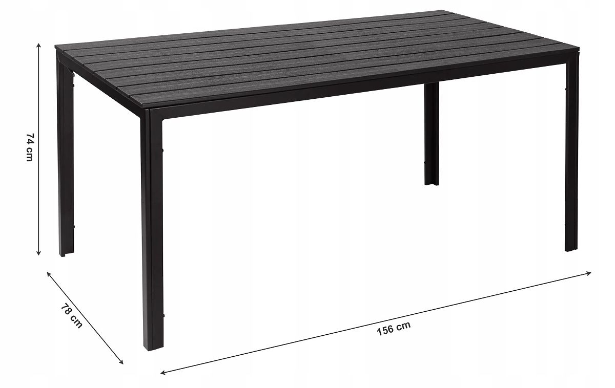 Duży czarny stół ogrodowy dla 6 osób, odporny na warunki atmosferyczne. .. więcej