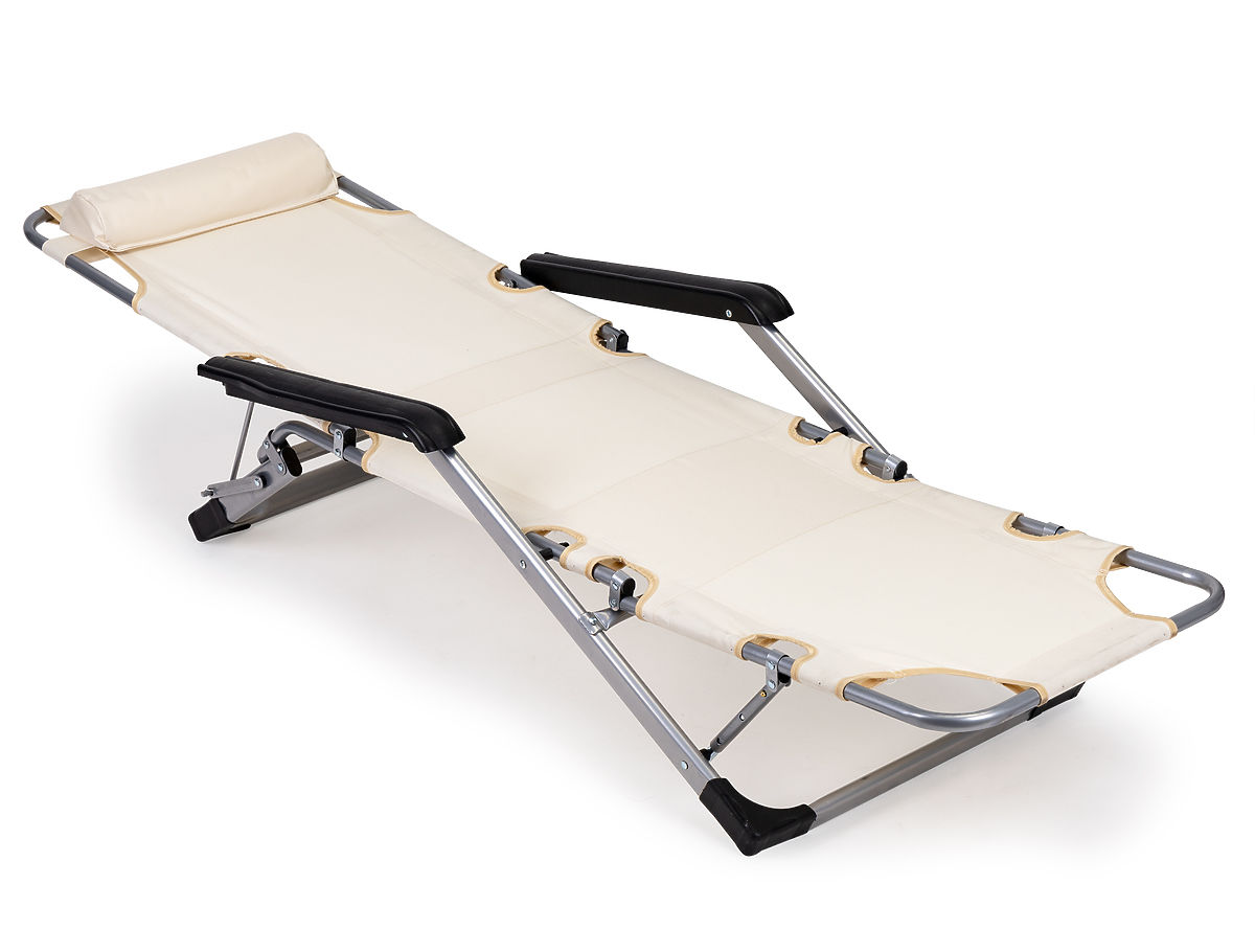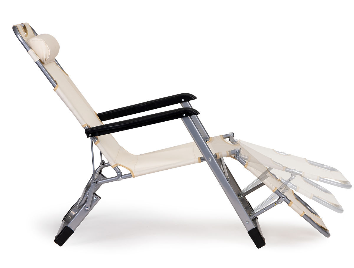 Składane ogrodowe krzesło plażowe z podgłówkiem i regulowanym podnóżkiem. .. więcej