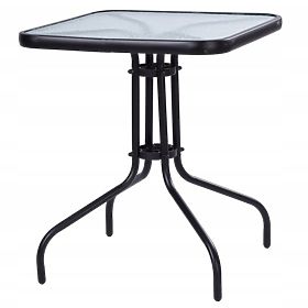 DOBRZE ZAPROJEKTOWANY STOLIK OGRODOWYKwadratowy blat o wymiarach 60x60 cm zapewnia miejsce dla 4 osób, które mogą wygodnie odłożyć na nim swoje napoje lub nawet jeść. Metalowa konstrukcja zapewnia stabilność a blat z hartowanego szkła sprawia, że stolik jest trwały i bezpieczny nawet przy dużym obciążeniu.