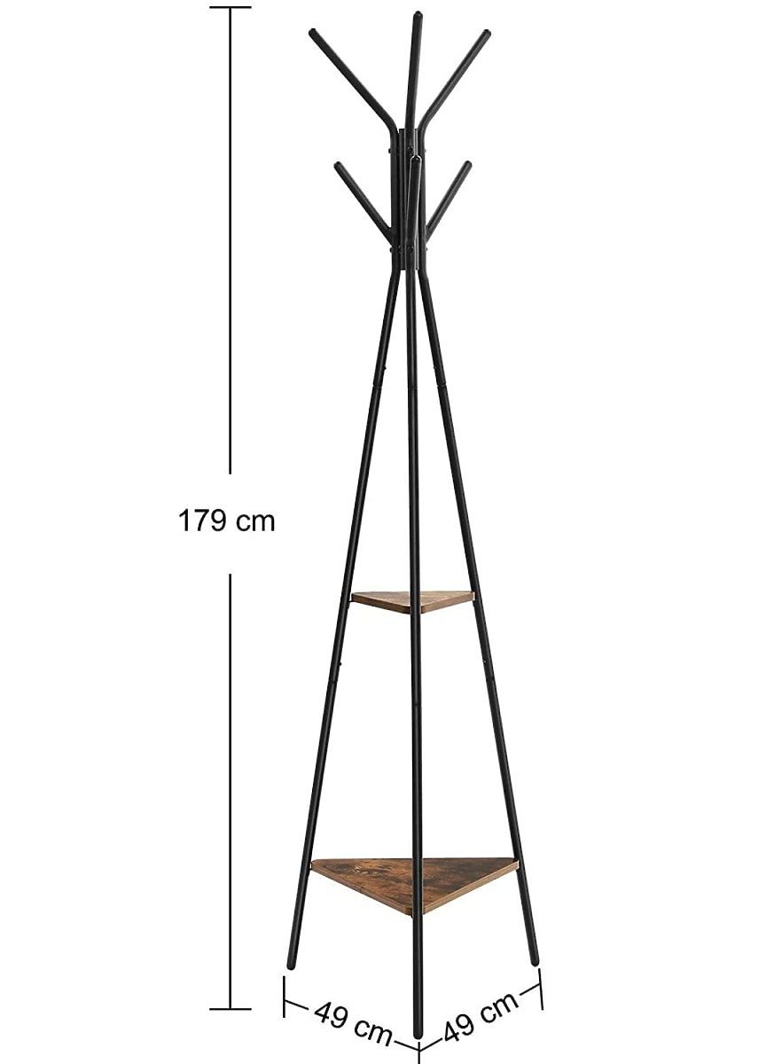Ten produkt zajmuje mało miejsca i ma stabilną trójkątną podstawę, dzięki której mamy pewność, że produkt nie będzie się przechylał przy dodatkowym obciążeniu. Ponadto produkt jest wyposażony w 6 zaokrąglonych haczyków do zawieszania płaszczy, kurtek, toreb lub szalików i czapek.