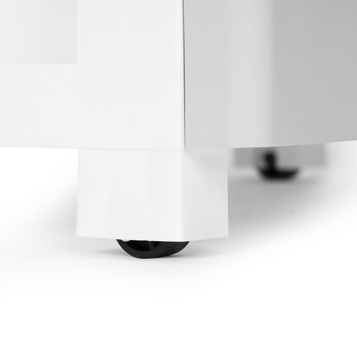 BEZPIECZNE PRZESUWANIEDzięki kółkom zamontowanym w nogach regał można łatwo przesuwać nawet przy pełnym obciążeniu, więc bez problemu zmienisz jego miejsce bez konieczności opróżniania szuflad. Możesz swobodnie zmieniać aranżację przestrzeni i dostosować regał do potrzeb danego pomieszczenia.