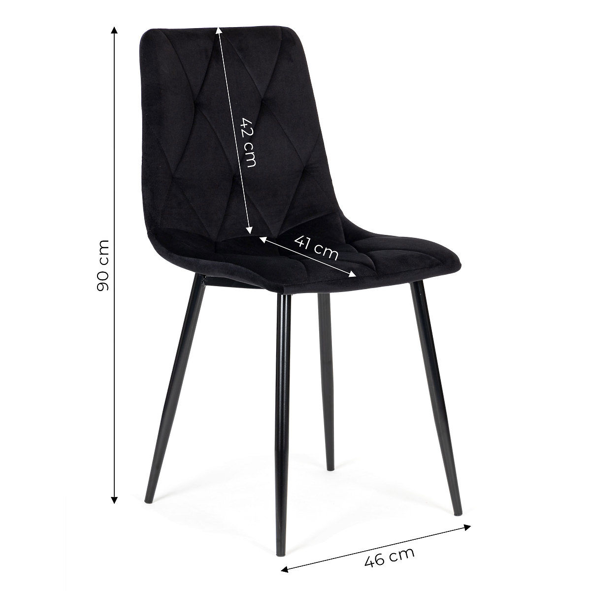 Krzesła będą doskonale pasować do rodzinnego stołu w Twojej jadalni, salonie lub kuchni. Czarne pokrycia wykonane są z przyjemnego i trwałego aksamitu, a ich prosty kształt sprawia, że idealnie pasują do przestrzeni salonu, jadalni, ale także biura czy restauracji. Nowoczesny design i estetyczne połączenie aksamitu i metalu tworzą zestaw dla najbardziej wymagających użytkowników.