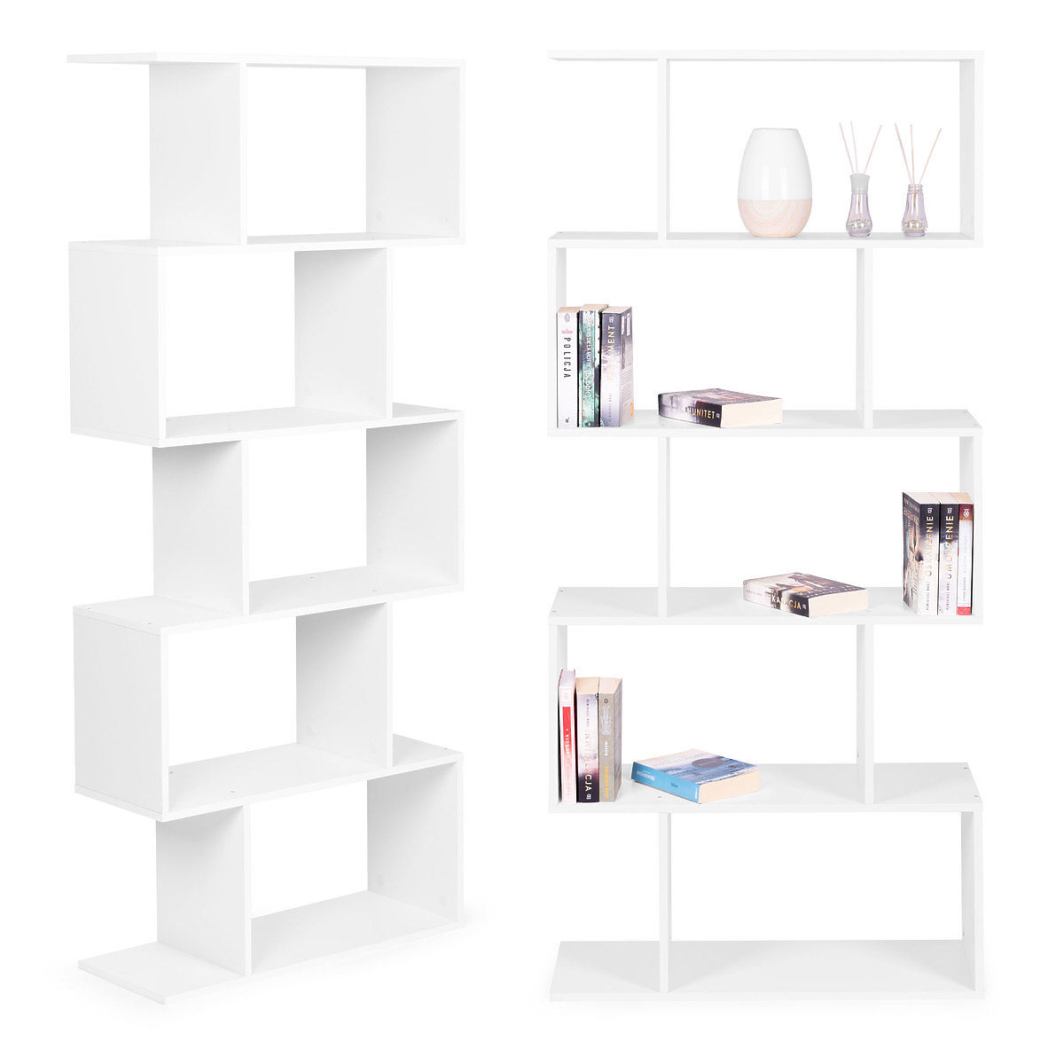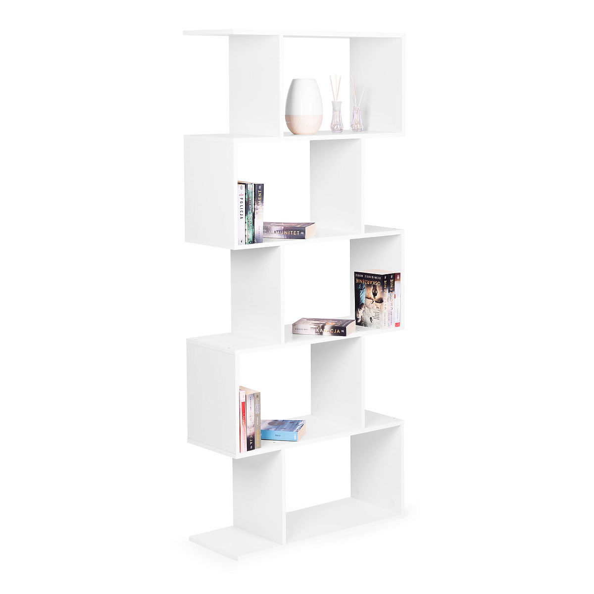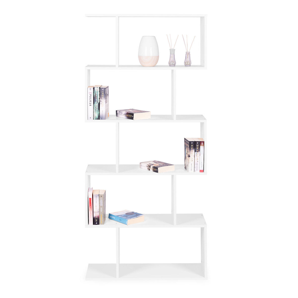 Regał ma aż 5 funkcjonalnych półek, każda półka oferuje wystarczająco dużo miejsca na przechowywanie różnych przedmiotów – od książek i ozdób po drobne akcesoria.