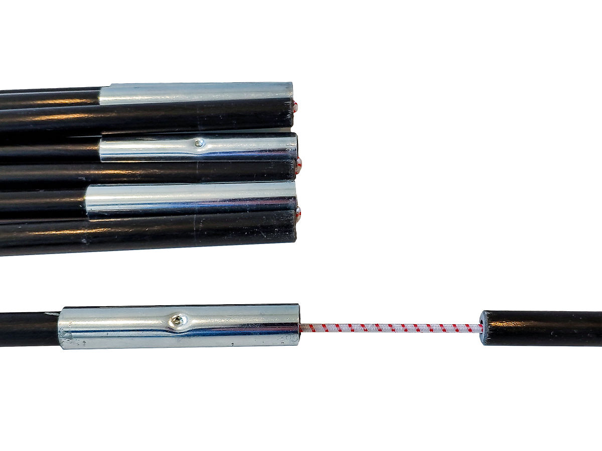 Konstrukcja pawilonu składa się z krzyżowo połączonych rurek wykonanych z laminatu, dzięki czemu jest lekka i wytrzymała.