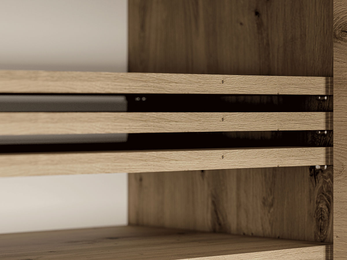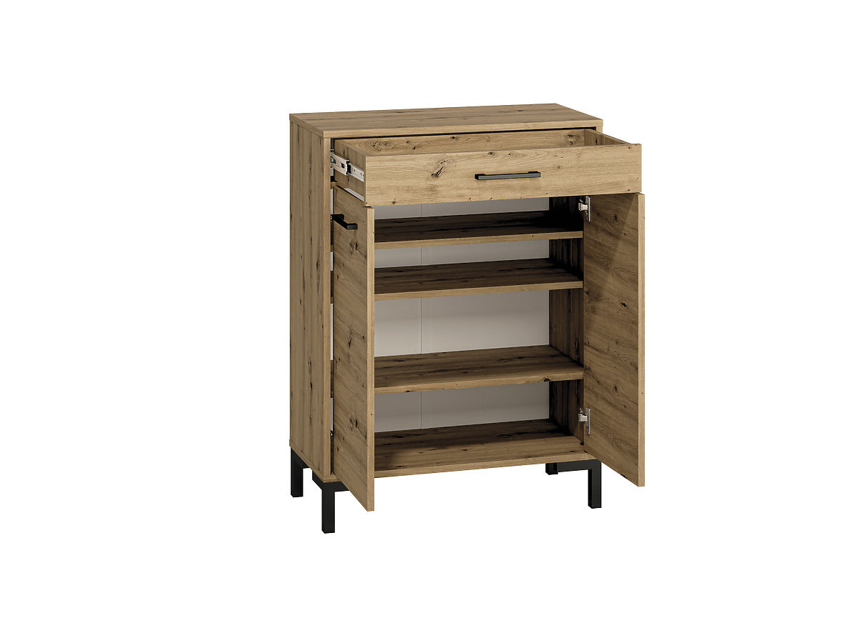 Szafka na buty Nevio to idealne rozwiązanie do przechowywania butów w elegancki i stylowy sposób. Dekor dębowy nadaje szafce przyjemny, naturalny wygląd, który doskonale komponuje się z nowoczesnymi i tradycyjnymi wnętrzami. Ten elegancki i praktyczny dodatek do przedpokoju z dużą ilością miejsca do przechowywania pozwala uporządkować buty i utrzymać porządek w przedpokoju.