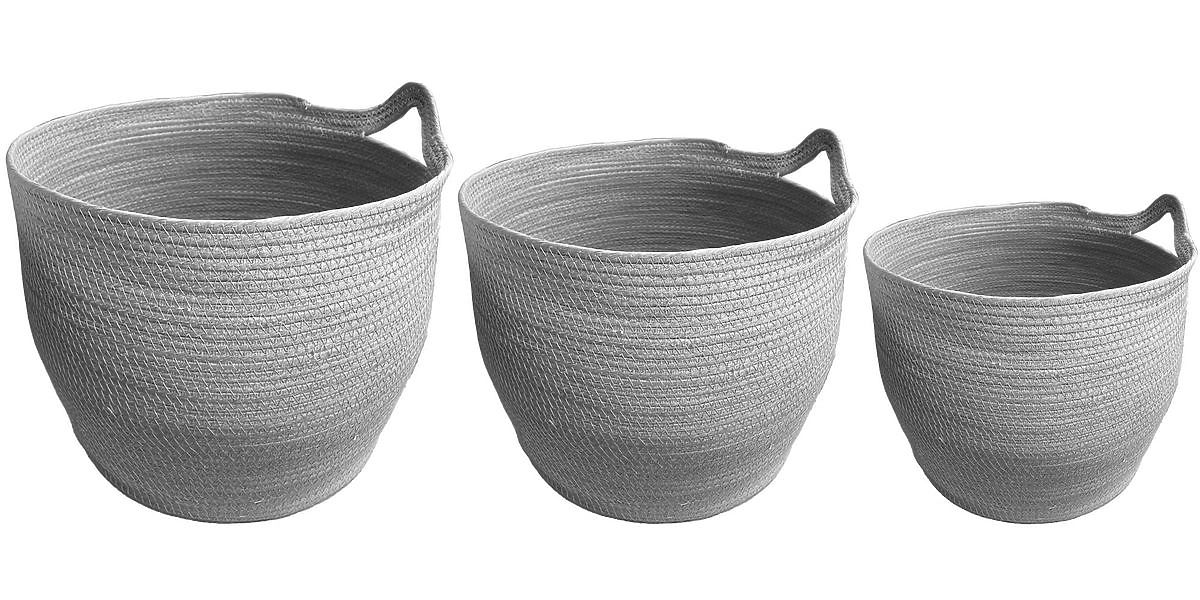 Nowoczesny zestaw trzech szarych koszy BOHO ociepli każde pomieszczenie w Twoim wnętrzu. Te stylowe, ręcznie plecione kosze doskonale zastępują tradycyjne pudełka i dzięki swojej konstrukcji są lekkie i przewiewne. Świetnie pasują do salonu, sypialni lub łazienki, gdzie zapewnią wystarczającą ilość miejsca do przechowywania różnych przedmiotów, jednocześnie upiększając Twój dom.