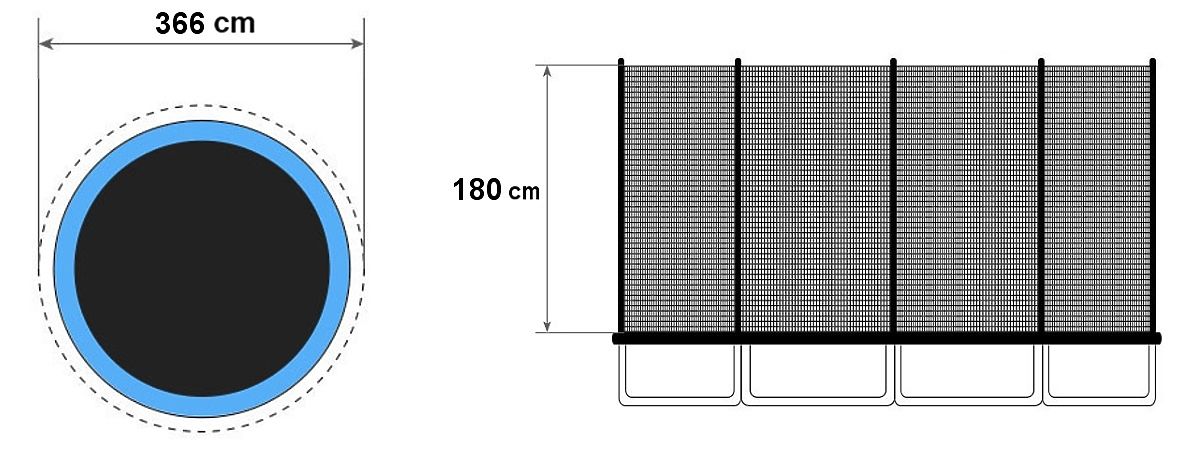 Zewnętrzna siatka na trampolinę o średnicy 366 cm i 8 słupkach. .. więcej