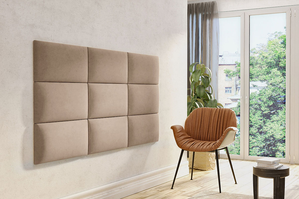 Tapicerowane panele Klasik w kolorze beżowym są dostępne w trzech różnych rozmiarach: