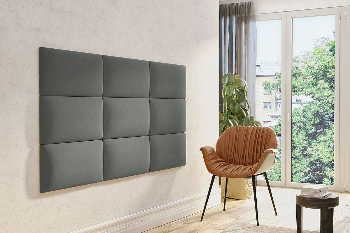 Tapicerowane panele Klasik w kolorze grafitowym są dostępne w trzech różnych rozmiarach: