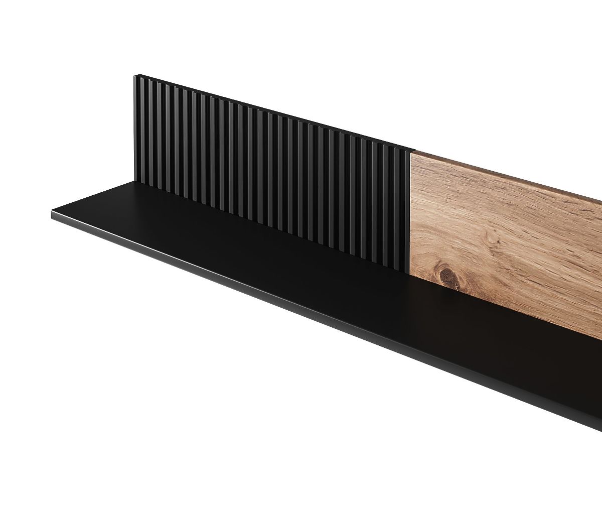 Kolor: Dąb wotan w połączeniu z czarnym kolorem nadaje półce nowoczesny i elegancki wygląd, który łatwo dopasować do każdego stylu wnętrza.