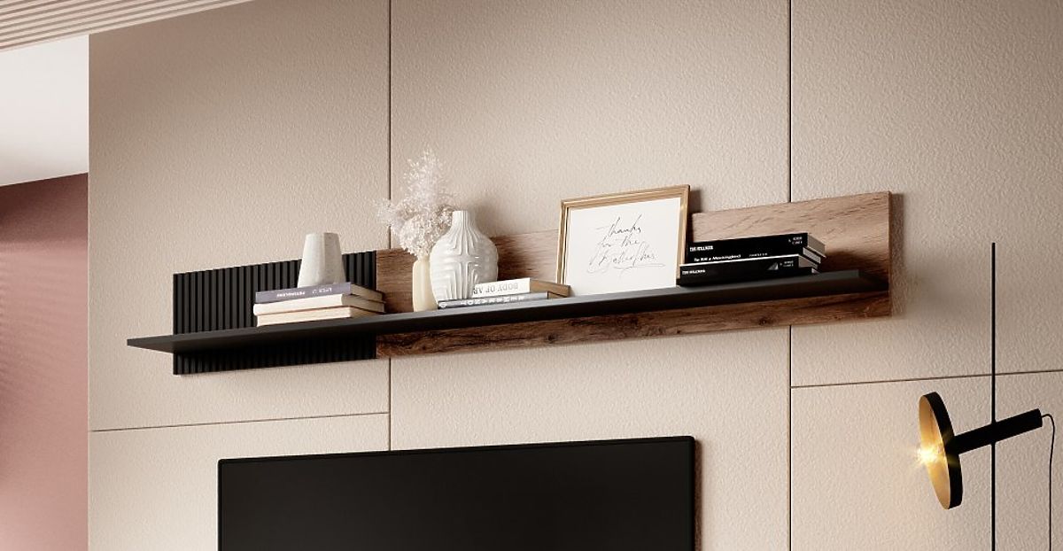 Stylowa półka ścienna, idealna do eksponowania dekoracji, książek lub innych przedmiotów. Jej nowoczesny design i wysokiej jakości materiały czynią ją praktycznym i eleganckim dodatkiem do każdego wnętrza.