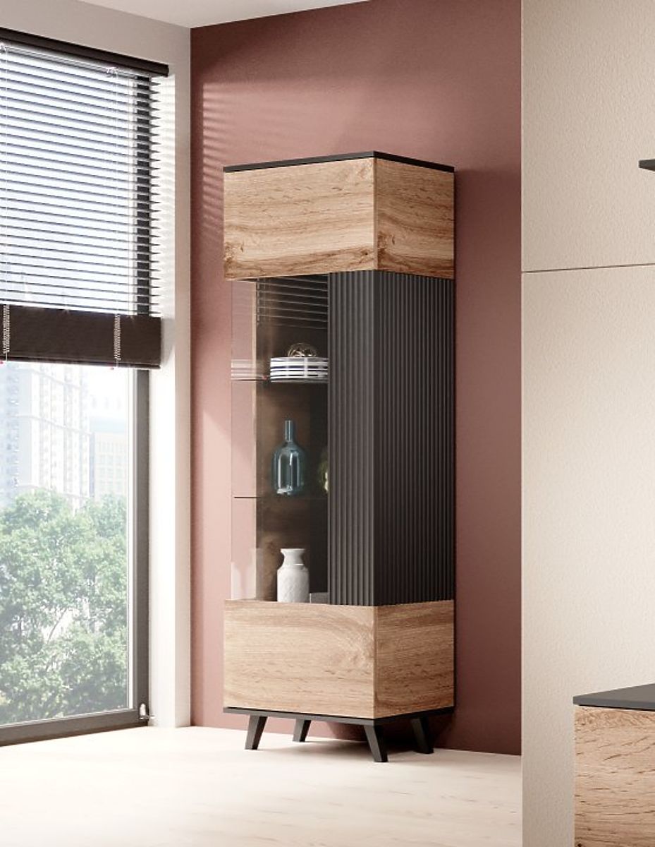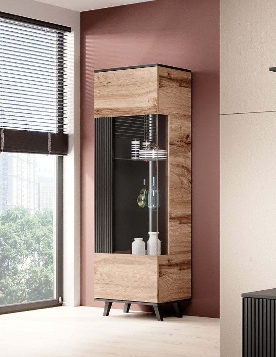 Elegancka witryna, która doskonale wpasuje się w każde wnętrze, oferując wystarczająco dużo miejsca na ulubione dekoracje, książki lub naczynia. Dzięki nowoczesnemu designowi i wysokiej jakości wykonaniu, ta witryna jest nie tylko praktycznym, ale także stylowym dodatkiem.