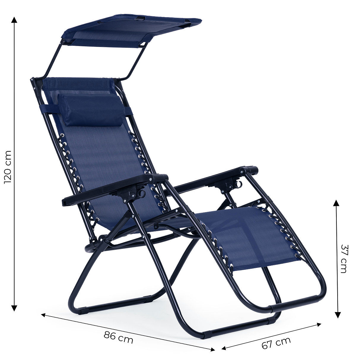 Lukahome.pl » Meble ogrodowe / Leżaki ogrodowe / Ogrodowy leżak plażowy z regulowanym oparciem i ruchomym daszkiem Modernhome - niebieski