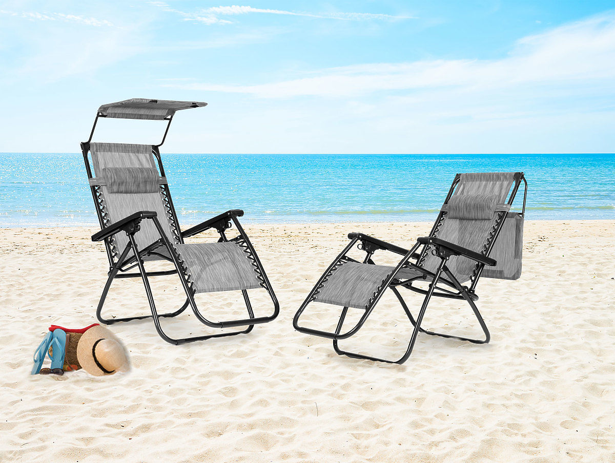Lukahome.pl » Meble ogrodowe / Leżaki ogrodowe / Ogrodowy leżak plażowy z regulowanym oparciem i ruchomym daszkiem Modernhome - szary
