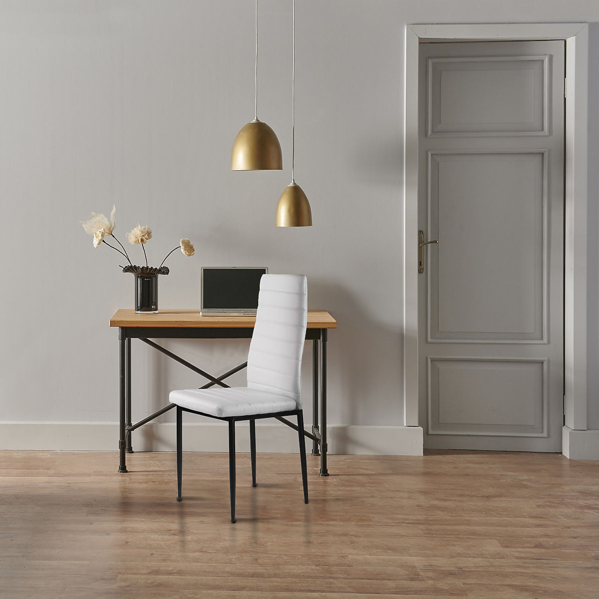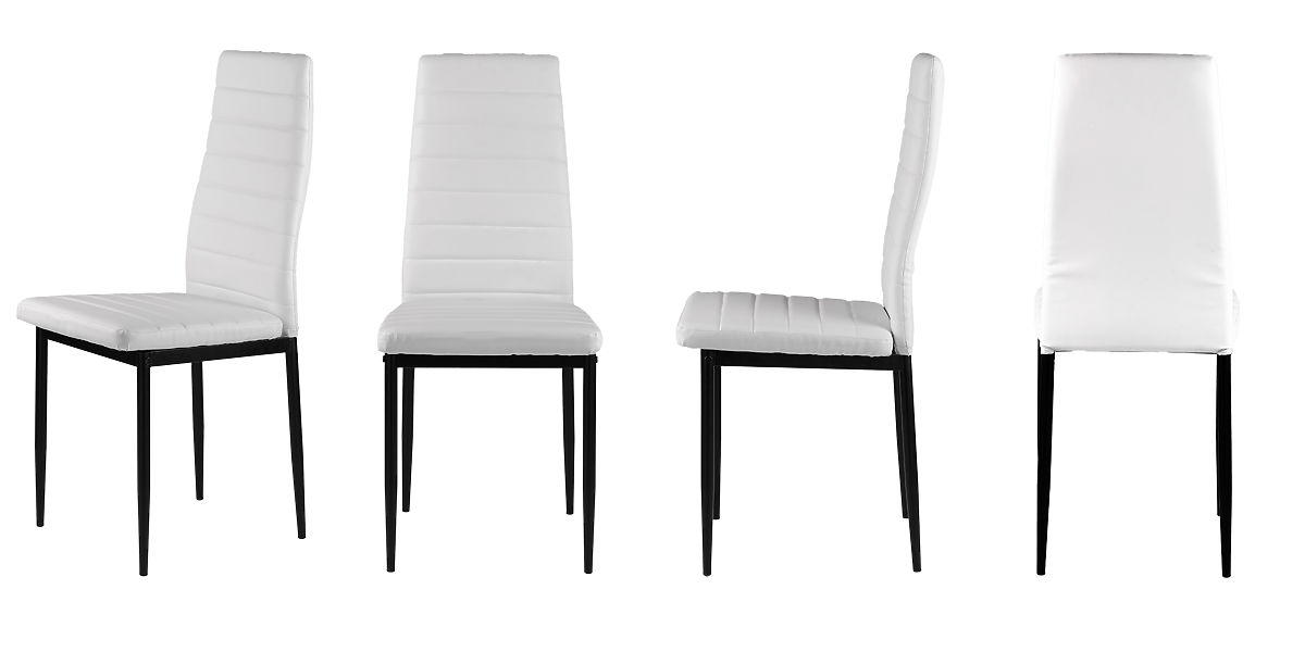 Krzesła będą świetnie komponować się z rodzinnym stołem w twojej jadalni i kuchni. Białe tapicerowanie wykonane z miękkiej ekoskóry i czarne, proste nogi tworzą interesującą kombinację, która sprawi, że krzesła będą świetnie wyglądać i pasować do każdego typu wnętrza, dodając mu wyjątkowego charakteru.