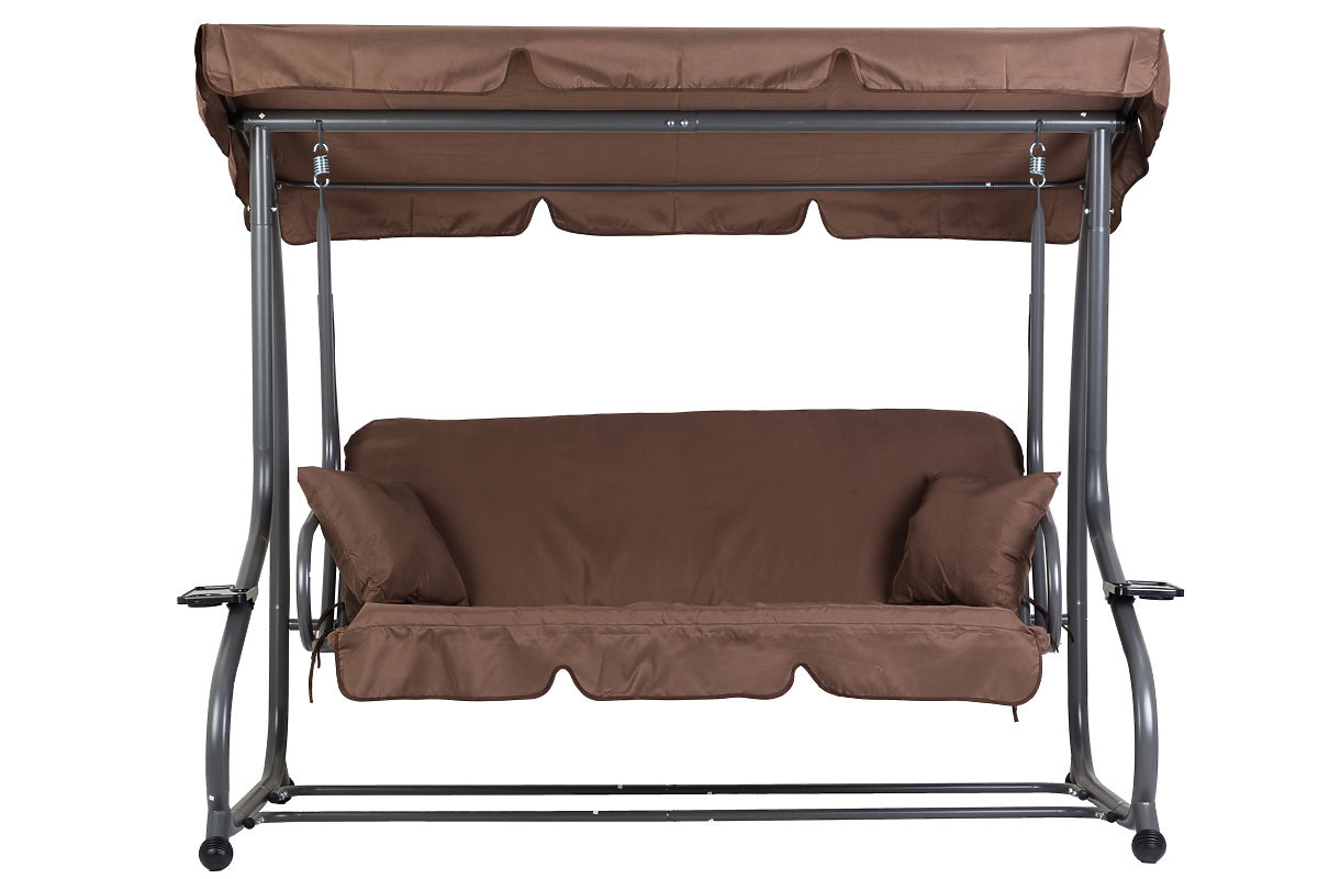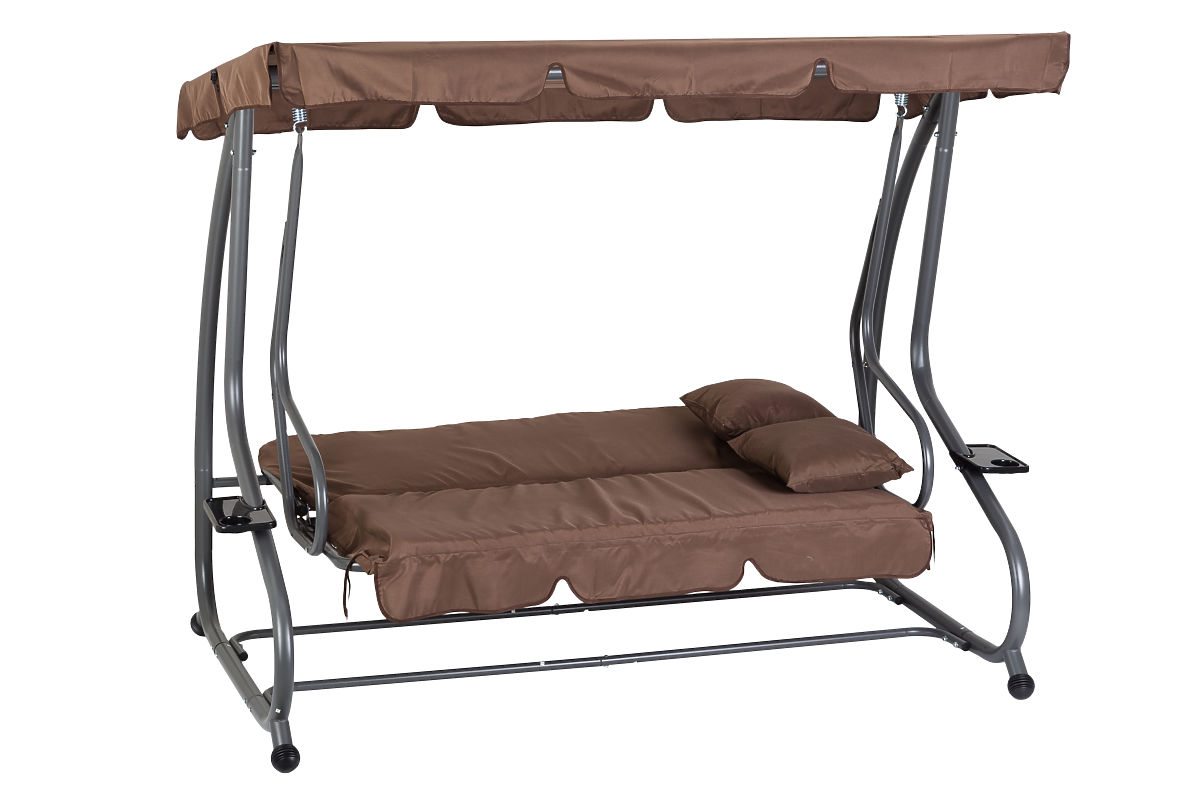 Lukahome.pl » Meble ogrodowe / Huśtawki i hamaki / Rozkładana huśtawka ogrodowa 2w1 z poduszkami brązowa