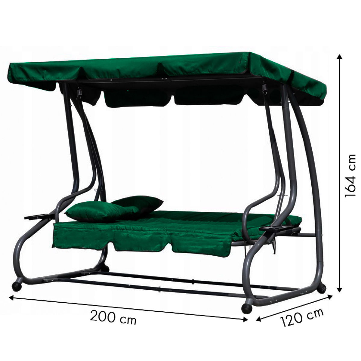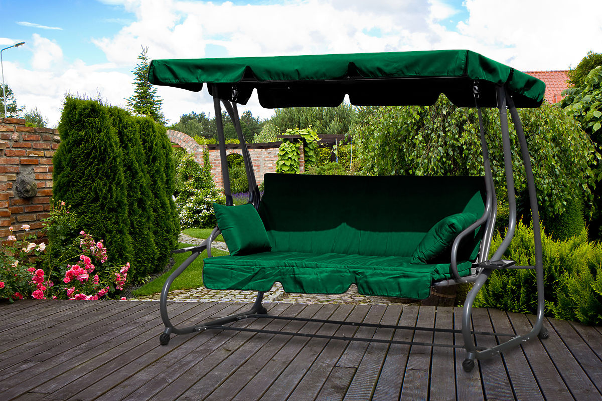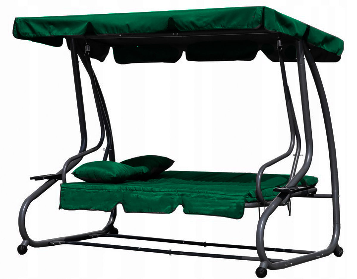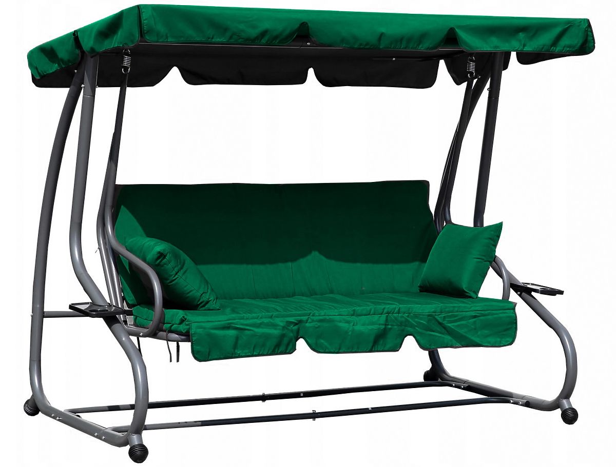 Lukahome.pl » Meble ogrodowe / Huśtawki i hamaki / Rozkładana huśtawka ogrodowa 2w1 z poduszkami zielona