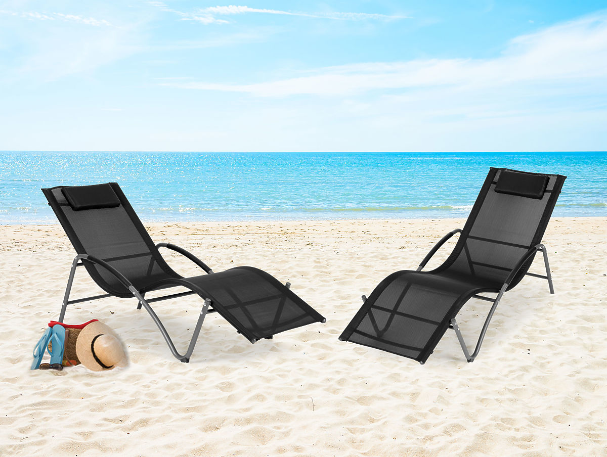 Lukahome.pl » Meble ogrodowe / Leżaki ogrodowe / Leżak ogrodowy z zagłówkiem stalowa konstrukcja czarny MultiGarden