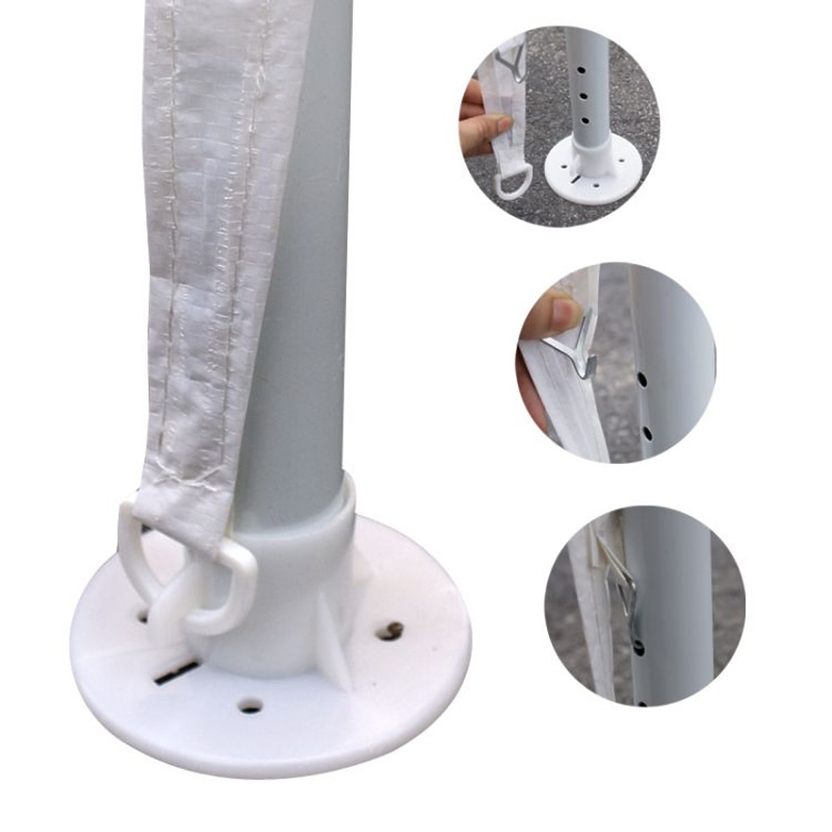 TRWAŁA KONSTRUKCJAStelaż namiotu wykonany jest z mocnych, metalowych rur malowanych proszkowo, o średnicy 32/25/25 mm, co zapewnia stabilność i odporność na korozję. Solidna konstrukcja gwarantuje trwałość, nawet przy intensywnym użytkowaniu. Każda z nóg namiotu jest przymocowana do podłoża za pomocą kołków, co zwiększa jego stabilność. Dach i ściany wykonane są z wytrzymałego i odpornego na warunki atmosferyczne polietylenu o gramaturze 100 g/m2 w eleganckim białym kolorze.