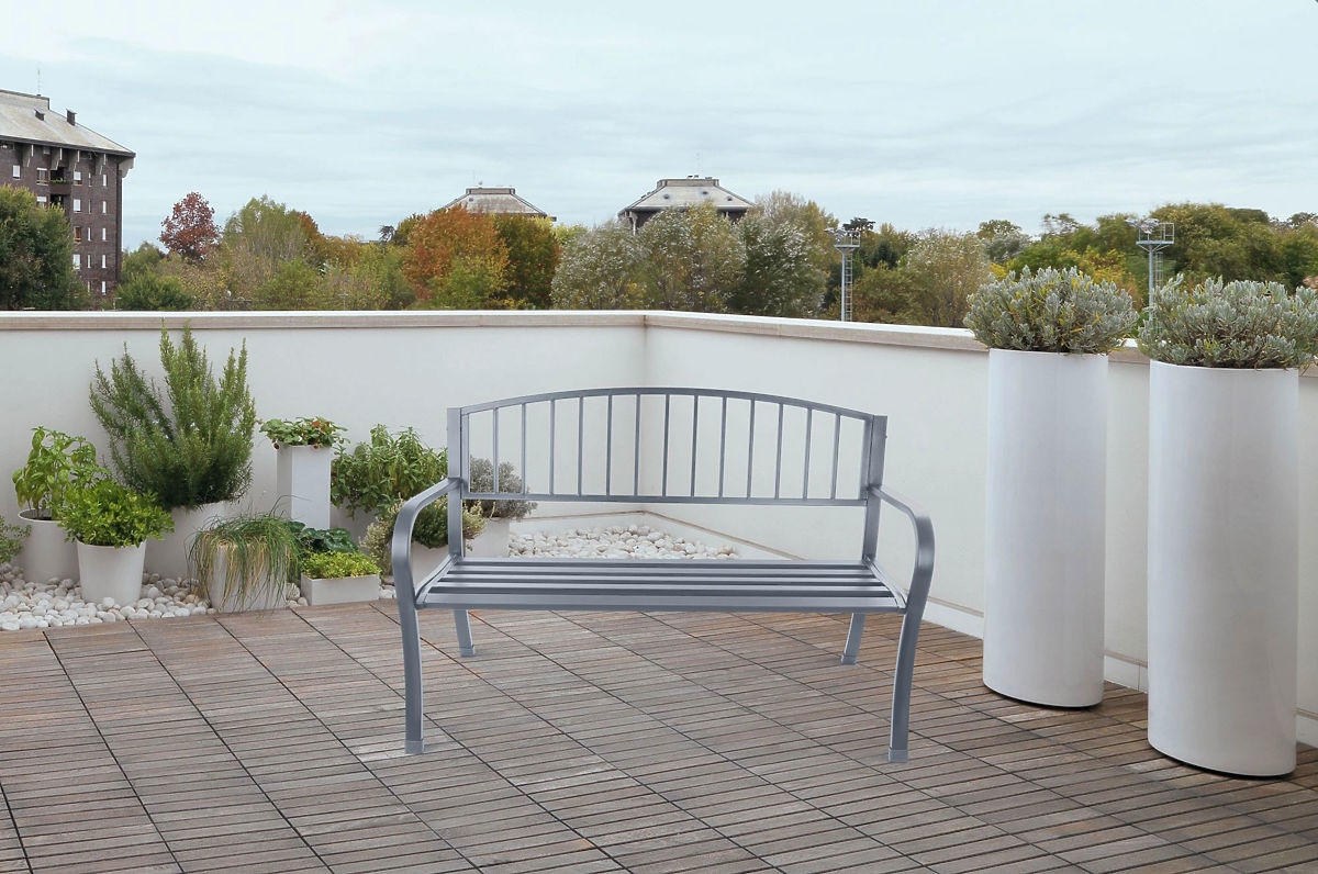 Lukahome.pl » Meble ogrodowe / Ławka ogrodowa / Ławka ogrodowa z oparciem parkowa na taras balkon konstrukcja metalowa grafitowa