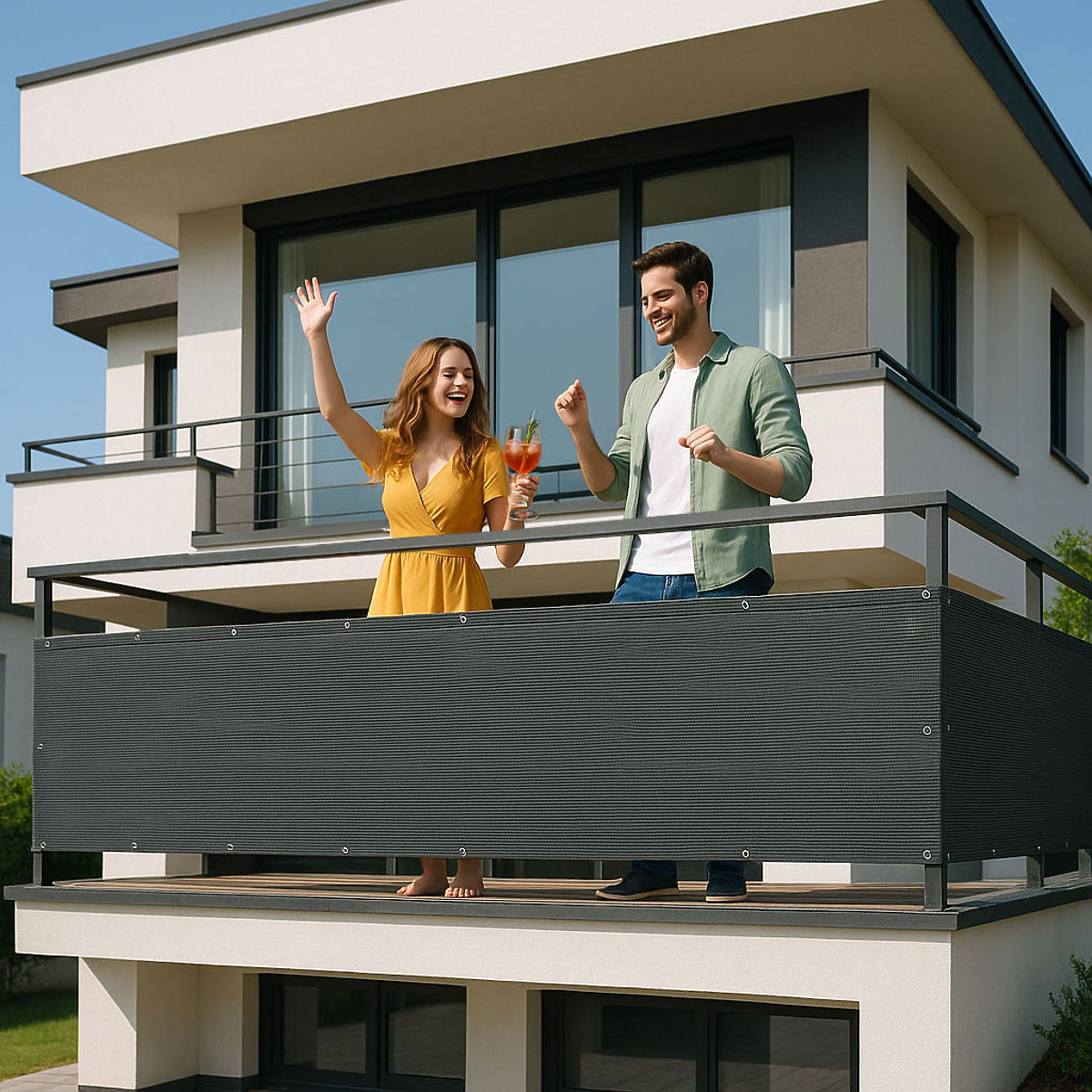 ODPORNOŚĆ I ELEGANCJA W JEDNYMOsłona balkonowa wykonana jest z trwałego materiału HDPE, który charakteryzuje się wysoką odpornością na uszkodzenia mechaniczne i promieniowanie UV, co pozwala jej zachować intensywny kolor nawet przy długotrwałym nasłonecznieniu. Materiał nie absorbuje wilgoci, dzięki czemu jest odporny na pleśń, deformacje i zmienne warunki atmosferyczne. Lekka, ale wytrzymała siatka skutecznie zacienia przestrzeń, jednocześnie umożliwiając swobodny przepływ powietrza.