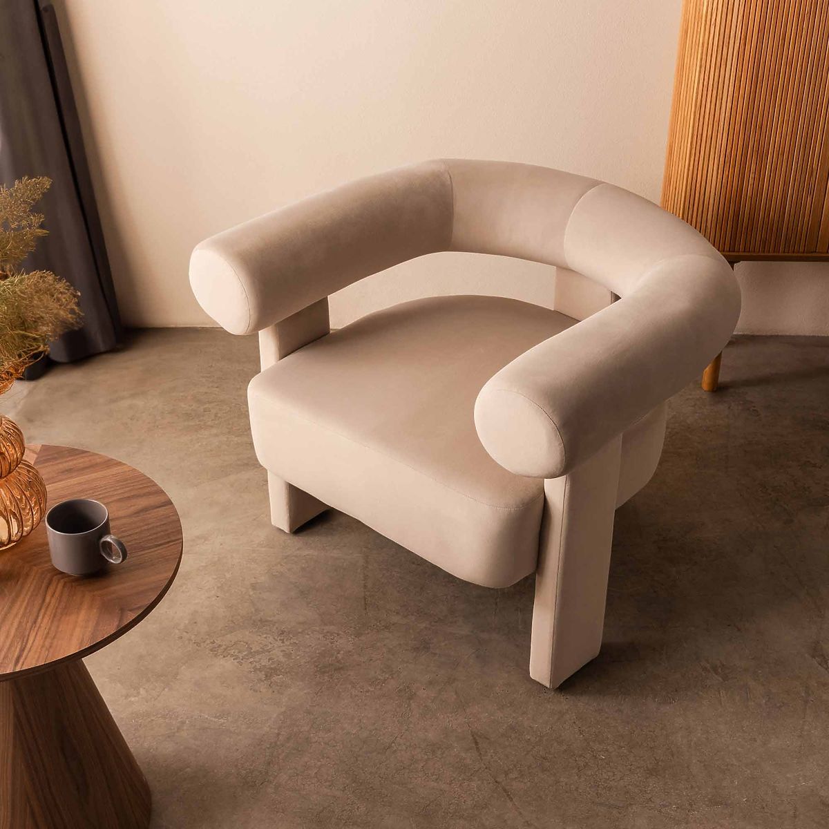 Lukahome.pl » Fotele i sesja / Fotele / Fotel relaksacyjny Hella jasnobeżowy, aksamitny, zaokrąglony